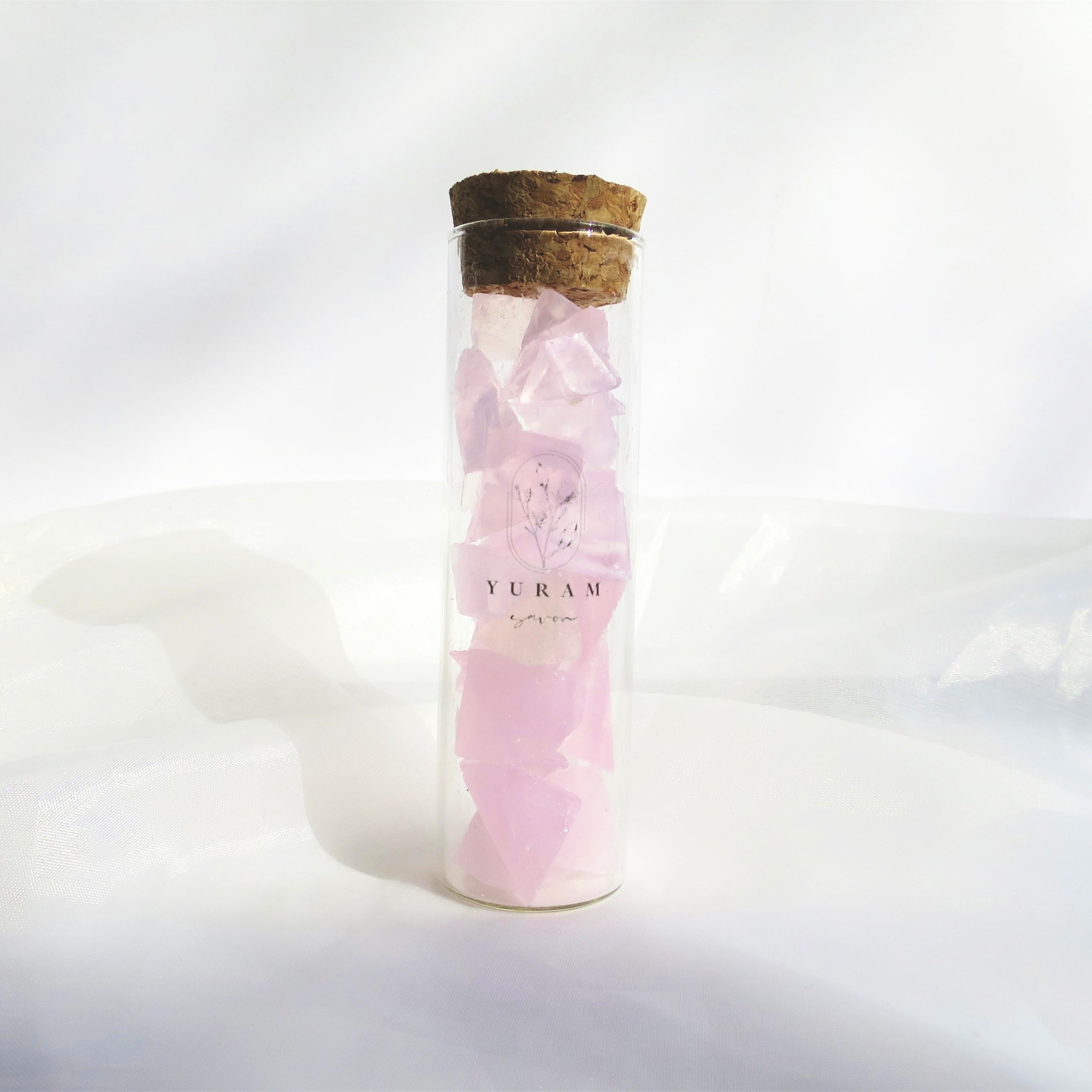 Bottle jewelは宝石が砕けた琥珀糖のようなソープの集合体です。細かくカットされた石鹸が入っており、1瓶1瓶色合いを考えながらお作りしております。見た目がとても美しいので、ハーバリウムのようにインテリアとして飾っていただくのをおすすめしています。 ※ハンド・ボディ用の石鹸ではございません。ランドリーソープ(下洗い)としてご使用いただけます。