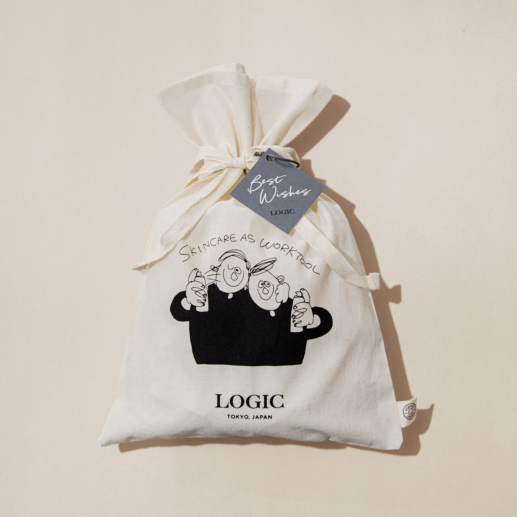メンズコスメブランド「LOGIC(ロジック)」と、イラストレーターとして活躍するオガワナツミさんのコラボレーションパッケージ。顔にひと吹き、たった2秒で保湿ケアが完了するミスト化粧水をオガワナツミさんにイラストを描き下ろしていただいたオーガニックコットン製ギフトパッケージに包んでお届け。