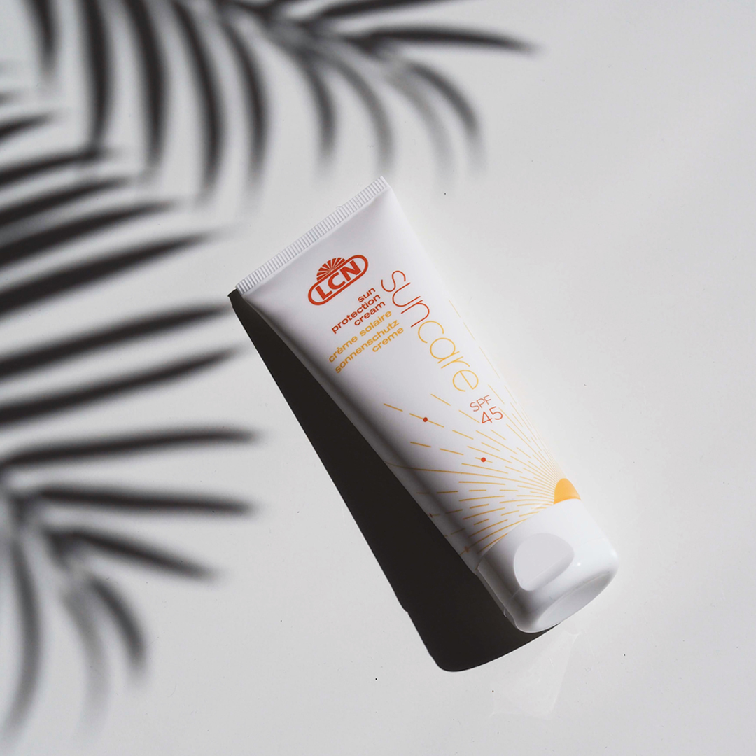 サンプロテクションクリーム75mlは、SPF45で紫外線をカットしながら、ヒアルロン酸やヒマワリ種子油で保湿。きしみや白浮きがない使い心地です。