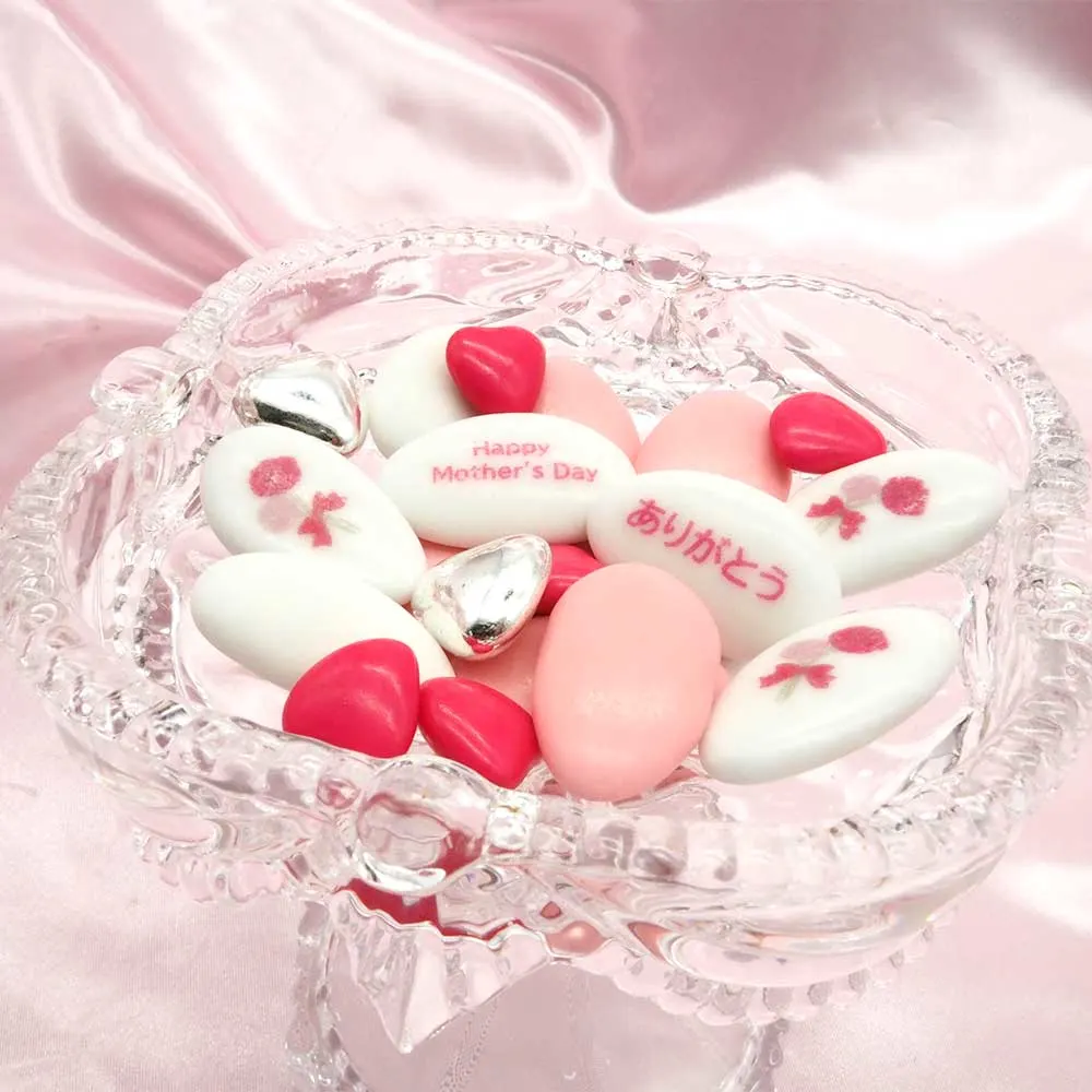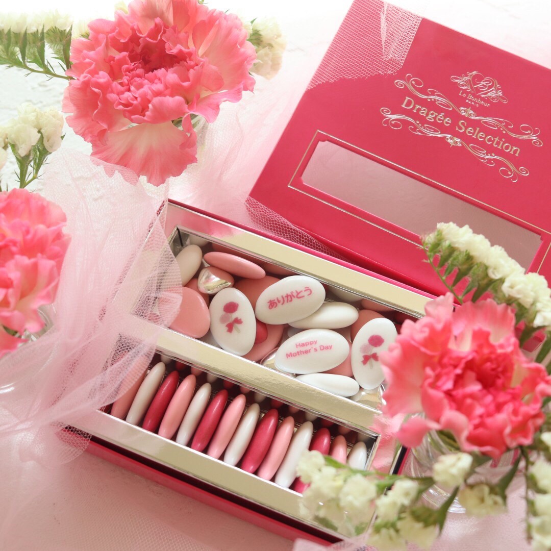 フランス語で「幸福の種」という意味もあるドラジェ。母の日限定品として「Happy Mother's Day」「ありがとう」のメッセージや「カーネーション」のキュートなイラスト入りドラジェをセット♪パッケージには「Happy Mother's Day」のメッセージ帯熨斗付きでお届けいたします。
