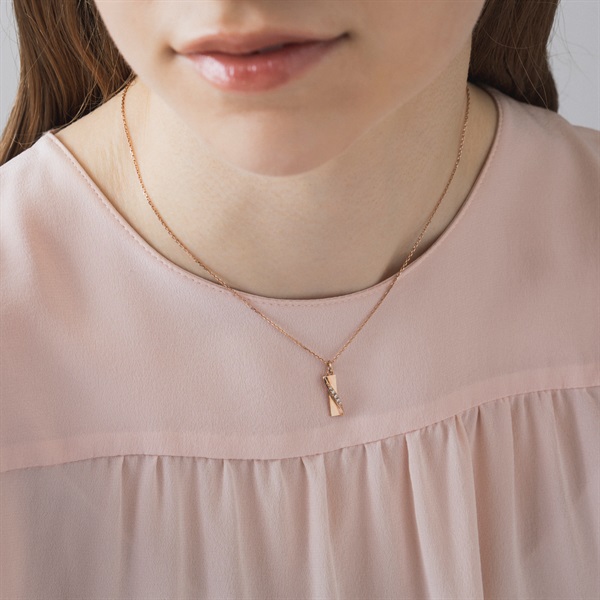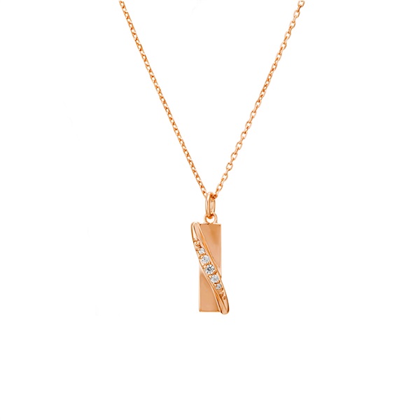 レディースタイプはラインに沿ってキュービックジルコニアがきらめき、胸元を華やかに彩ります。ピンクゴールドコーティングの温かみある輝きも魅力的な、優しさを感じさせるデザインです。