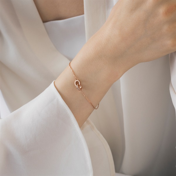 ピンクゴールドコーティングの優しい色合いとキュービックジルコニアの輝きが女性らしさを引き立てます。