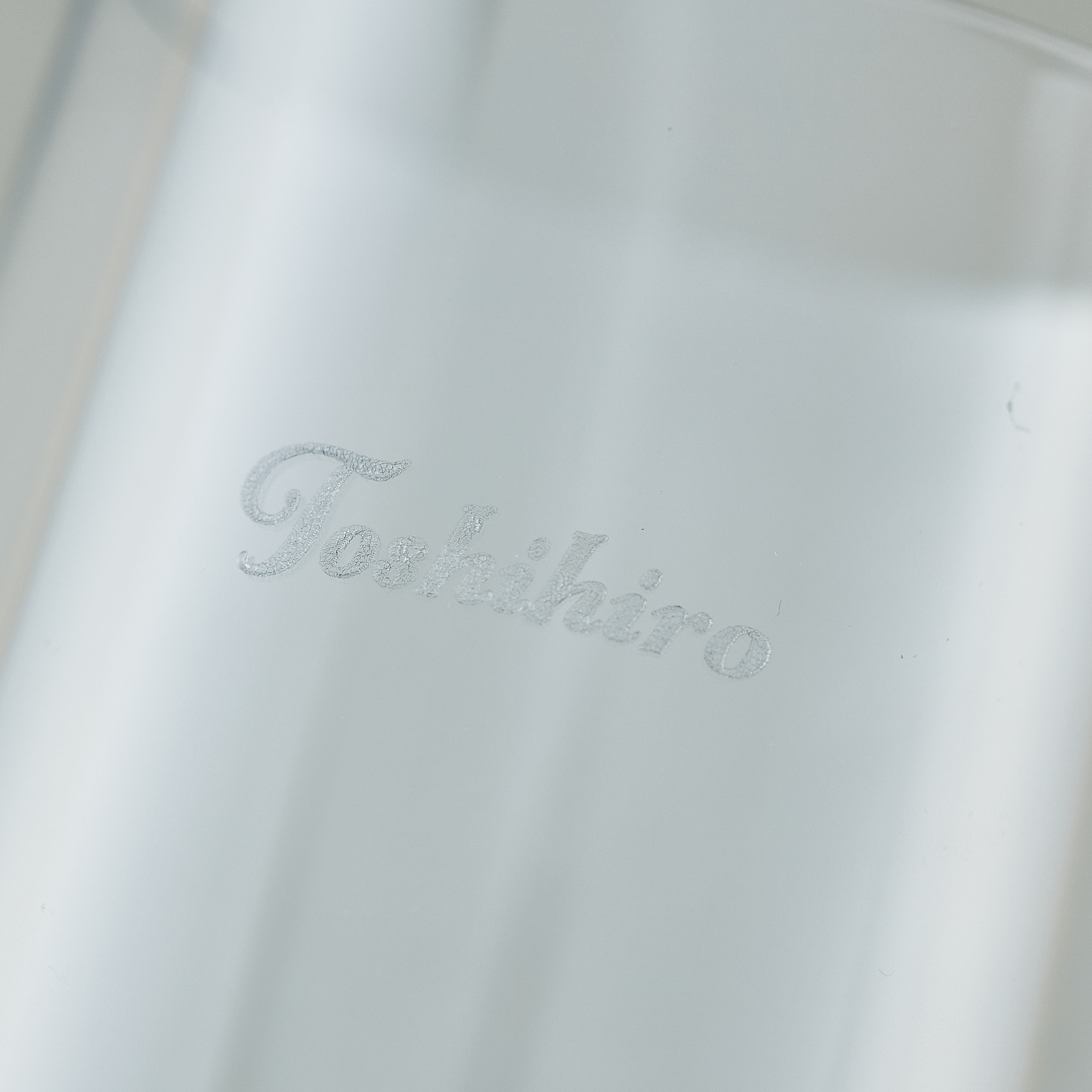 グラスにお相手のお名前を刻印できます。 ペアのグラス1つずつに刻印が可能なので、結婚祝いや記念日などの特別なプレゼントにおすすめです。 ※ 名入れには、別途オプション料金がかかります ※ 画像はイメージです