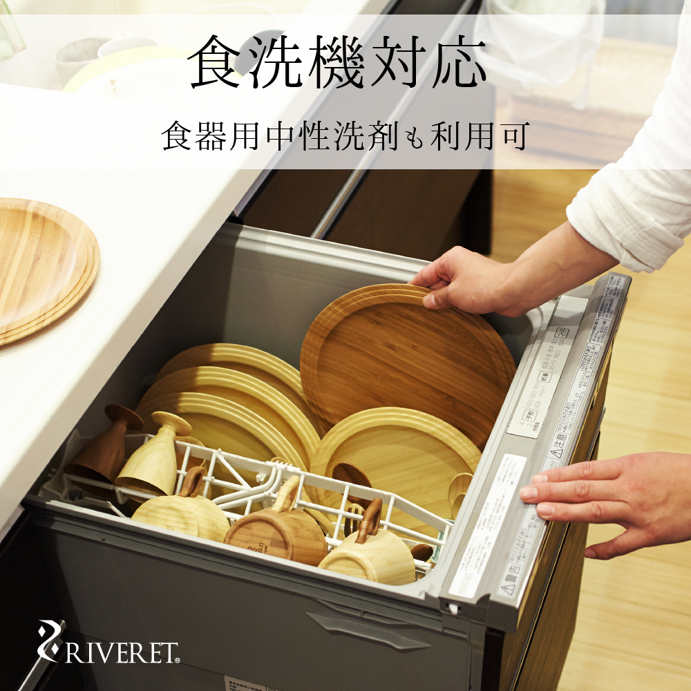【RIVERET】の食器は全て食洗機に対応。 天然素材食器では稀にみる、食器洗い乾燥機耐性テストに合格しております。 もちろん陶器やガラス製食器と変わらず、食器用中性洗剤で洗うことが可能です。 ※ 推奨温水設定 70℃以下。。 ※ 漂白剤・研磨剤等が含まれた食洗機用洗剤は使用不可です。