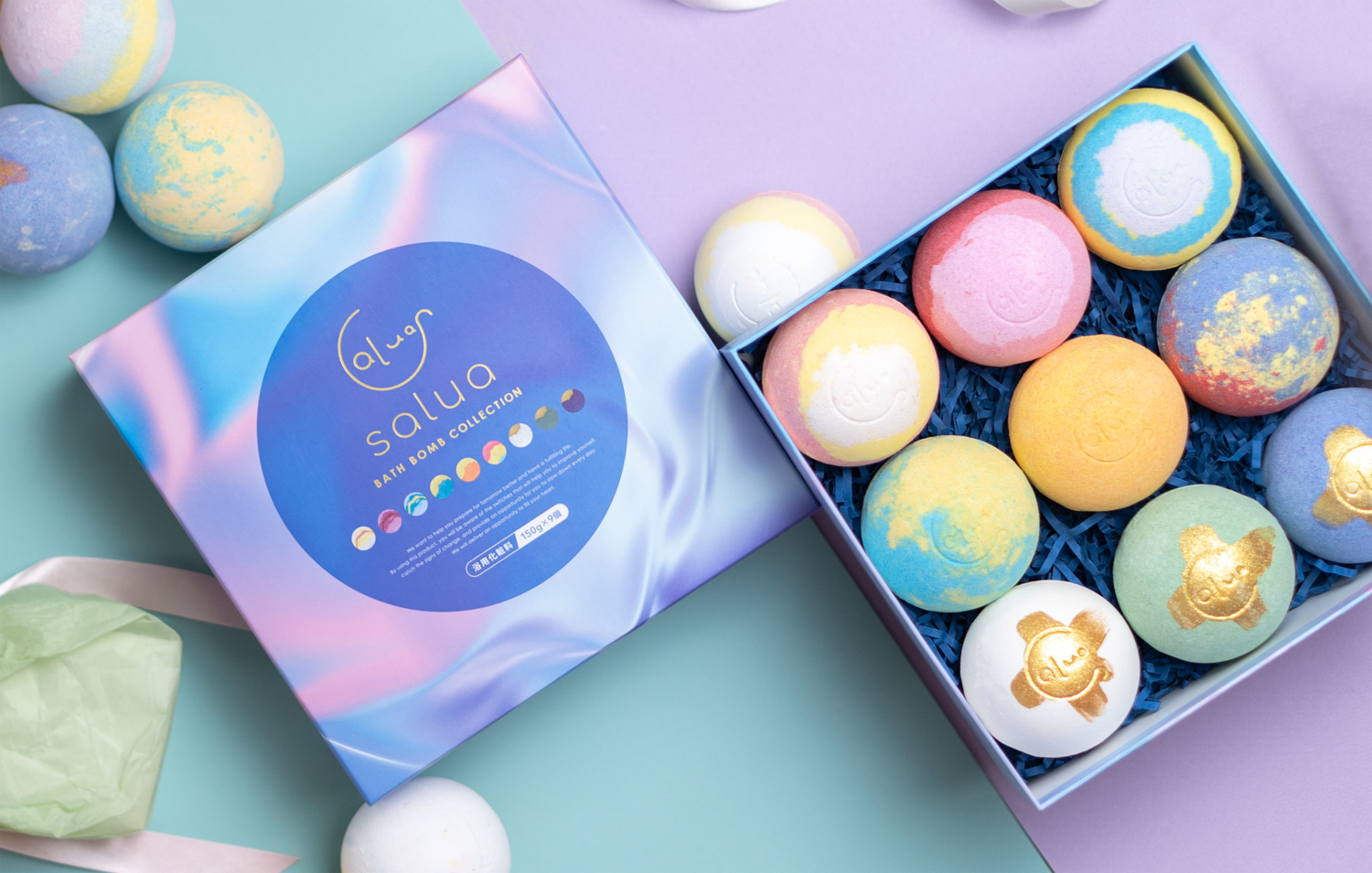 大口注文・法人のお問い合わせはこちら■150gの大玉サイズ! 泡がたくさん 大玉サイズ 可愛らしい泡がたくさん出るように、150g/個 の大玉サイズにしました。(従来品は100g) ■総重量 1.4kg もらって嬉しい満足感に どうせプレゼントを渡すなら相手に喜んで欲しい。そんな気持ちに応えるため、満足感たっぷり仕様にしました! 可愛い本体と梱包にこだわりました。 ■相手への寄り添い プレゼントを渡す相手への、ちょっとした気遣い。どんな人にも合うように、香り選定を行いました。