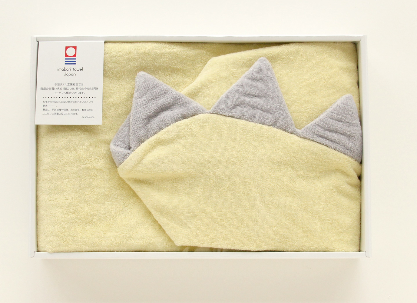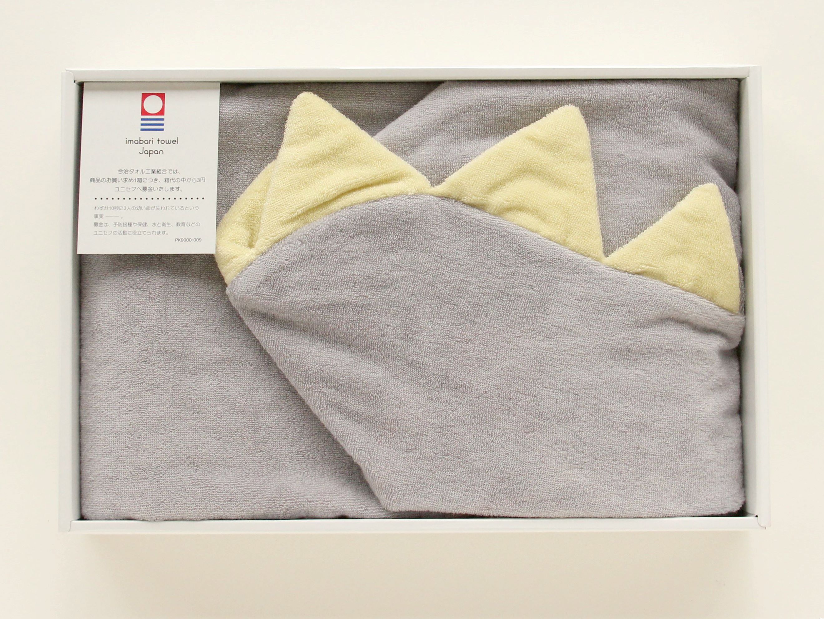 大口注文・法人のお問い合わせはこちらお子さまが大好きな「恐竜」をテーマに、遊び心あふれる商品を作りました。 フードのトゲトゲもタオルでかぶれば気分が上がること間違いなし!しなやかなやわらかさと光沢感のあるタオルでつくられているので、肌ざわりがよく吸水性があります。 ギフトボックス入りで出産祝いのプレゼントにもおすすめ。 今治タオルブランド認定番号:第2019‐1635号