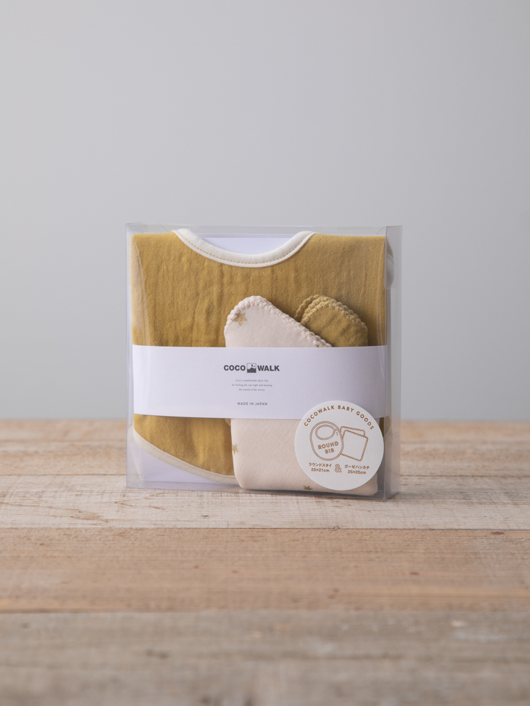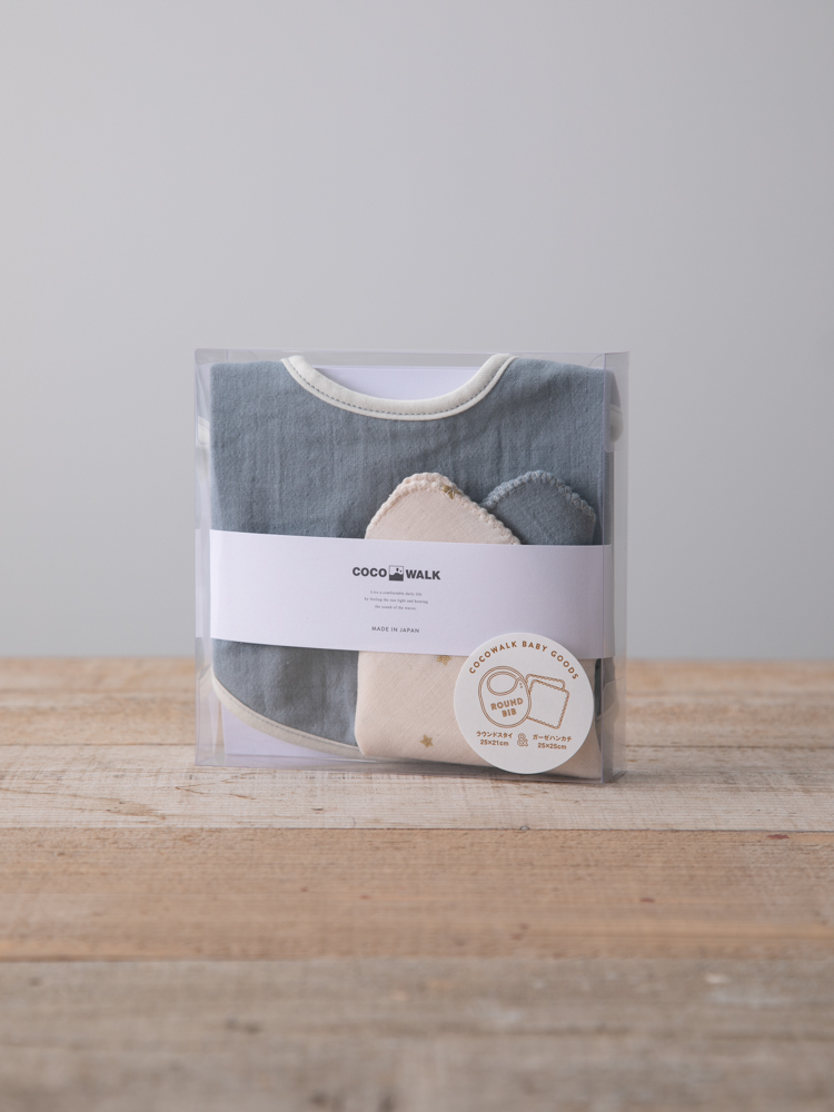 家族や友人へのプレゼントにぴったりな、スタイ+ミニハンカチのGIFTボックスです。毎日使う物だからこそ、いいものを。COCOWALK(ココウォーク)のベビーアイテムは、赤ちゃんの肌にやさしい素材選びや縫製にこだわり、国内で1つ1つ大切に作っています。