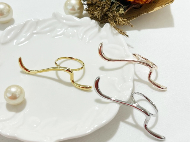 大口注文・法人のお問い合わせはこちらトレンド感溢れるウェーブラインが印象的なリングです。 単品使いはもちろん、お手持ちのリングとのコーデで抜け感を作ったり、ニュアンスリングと組み合わせて楽しむのもおすすめのアイテムです。 細身のリングは綺麗めなコーデやカジュアルなコーデにも合わせていただけます。