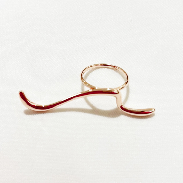 華奢なウェーブラインがスタイリッシュな印象のリングです。お手持ちのリングとのコーデで抜け感を作ったり、ニュアンスリングと組み合わせて楽しむのもおすすめのアイテム。ひとつでも十分な存在感を放ち、トレンド感のある手元にしてくれます。