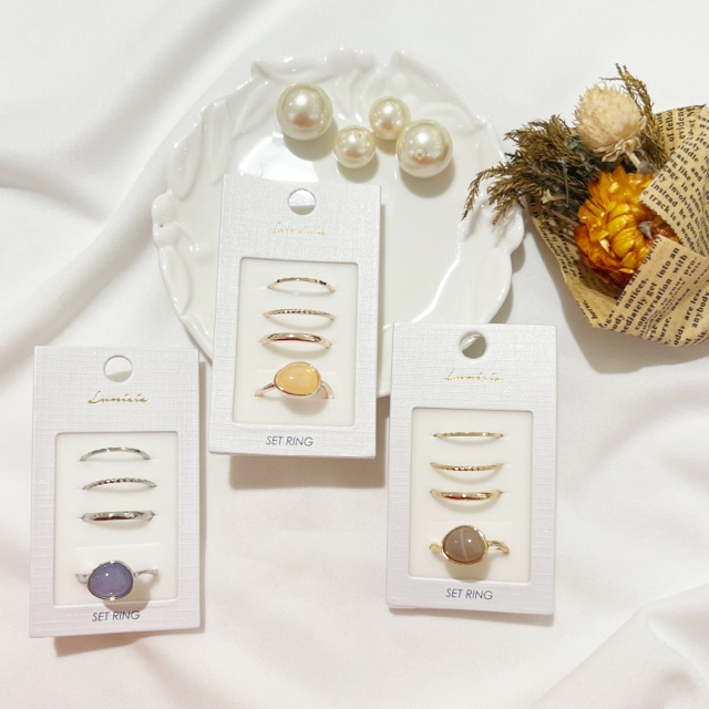 大口注文・法人のお問い合わせはこちら使いやすいデザインを厳選したセットリング。 シンプルなのでデイリーに身に付けられる万能アイテムです。 3色展開できれいめ系、カジュアル系、韓国系など様々なファッションジャンルに相性抜群。お手持ちのアイテムとの重ね付けもしやすく、コーデの幅も広がります。