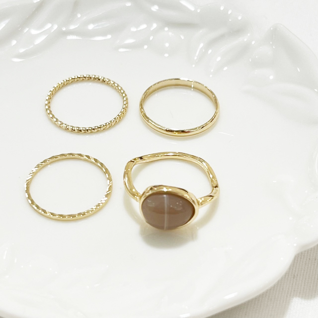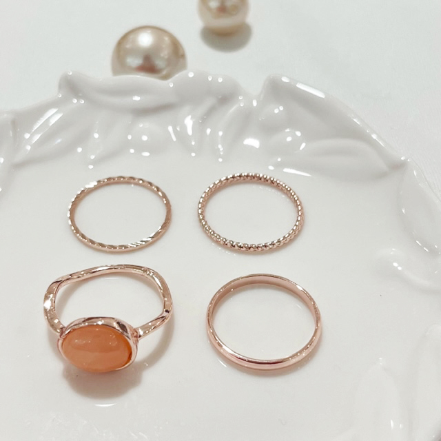 使いやすいデザインを厳選した4点セットのリングです。シンプルなデザインなのでデイリーに身に付けられる万能アイテム。お手持ちのアイテムとの重ね付けもしやすく、コーデの幅も広がります。