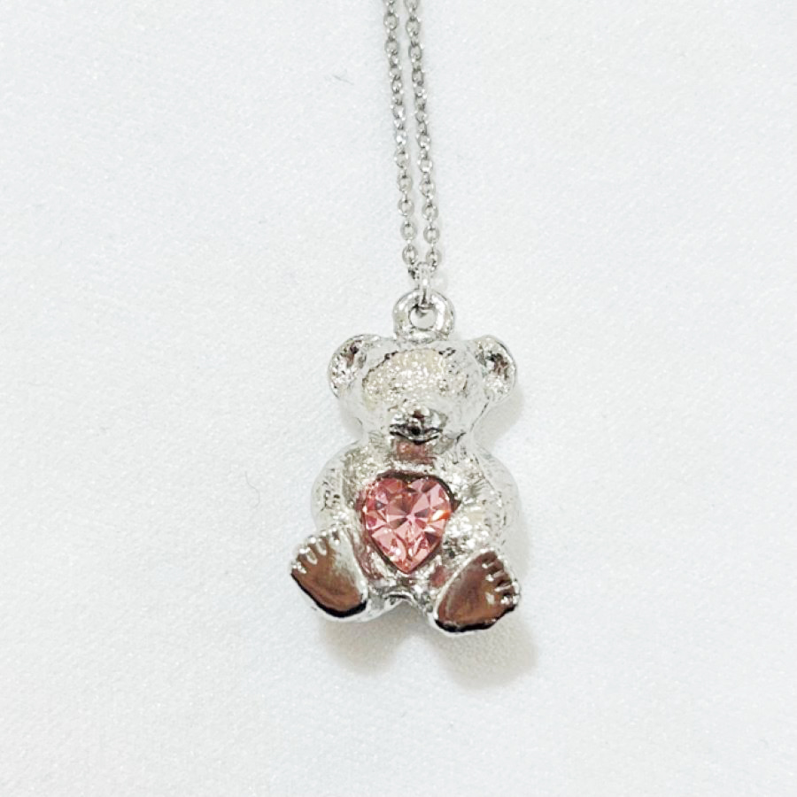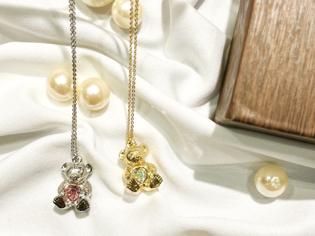 大口注文・法人のお問い合わせはこちらコロンとしたフォルムのクマのモチーフが大人可愛いオリジナルネックレスです。ハートのストーンを抱えたクマがキュートで目を引きます。さりげなくコーデのアクセントとなってくれ、首元に華を添えます。