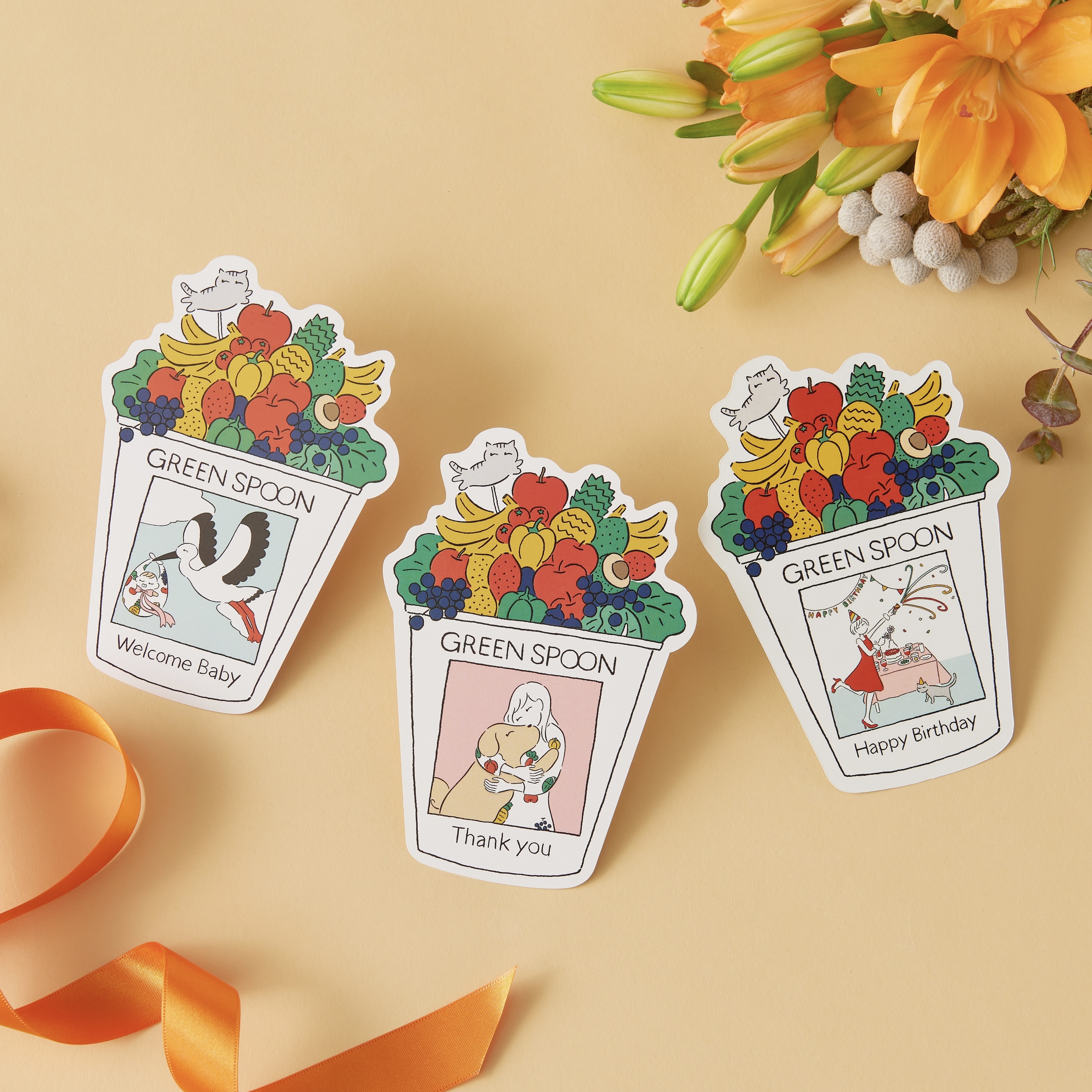 商品を購入する際にご希望のギフトカードをご選択いただければ、無料で同梱いたします。 ※メッセージを印字することはできません。