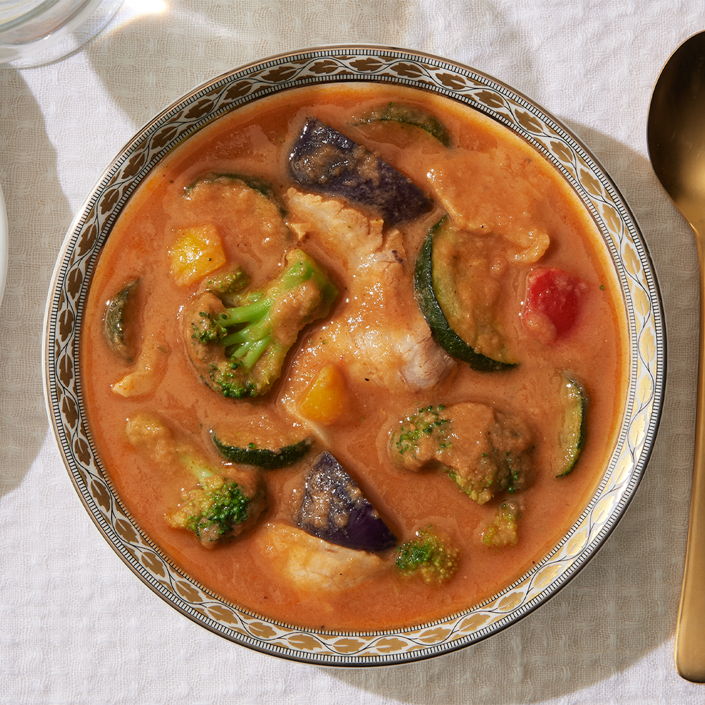 イセエビベースの濃厚ビスクに、大ぶり野菜を絡めて食べる贅沢ポタージュ。グラスフェッドバターや豆乳をベースにしたクリーミーなスープに、フレッシュなトマトとイセエビの風味を組み合わせた特製ビスクです。 原材料:グリルズッキーニ(スペイン又はベトナム)、アメリケーヌソース、オニオンソテー、牛乳、揚げなす、ブロッコリー(エクアドル又は中国)、鶏むね肉、トマトピューレ、赤黄パプリカ、ポテトフレーク、オリーブオイル、コンソメ顆粒、グラスフェッドバター、乳等を主要原料とする食品、エビエキス、塩、黒こしょう、(一部にえび・乳成分・小麦・大豆・鶏肉・ゼラチンを含む) ※アレルギー:えび・乳成分・小麦・大豆・鶏肉・ゼラチン 内容量:182g カロリー:222kcal