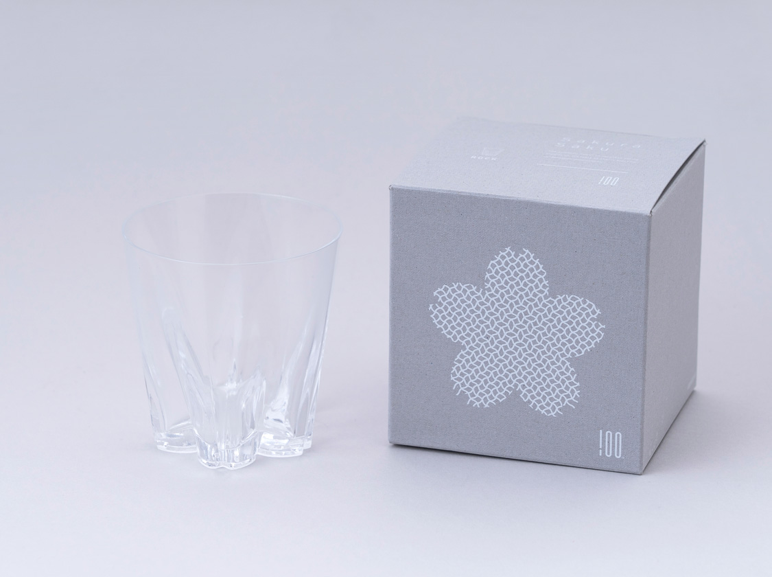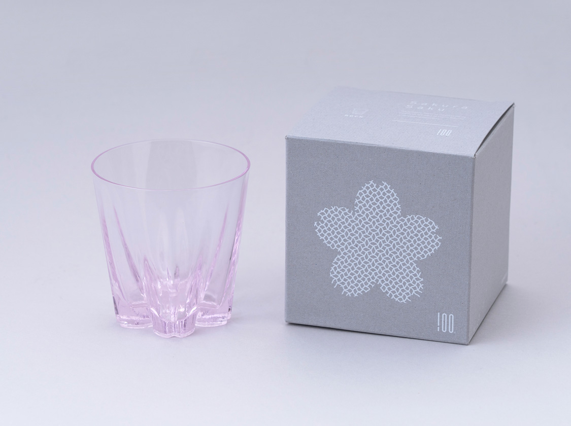冷たい飲み物をグラスに入れることによる結露現象によって卓上に桜の花を咲かせる「さくらさく ロック」。国内の熟練のガラス職人による丁寧な仕事で、ひとつひとつ隅々までくっきりとした桜の花びらが形作られました。普段の生活にささやかな楽しみをもたらしてくれます。