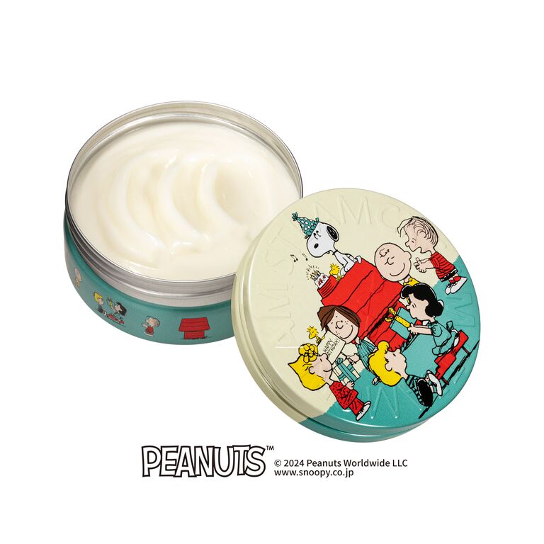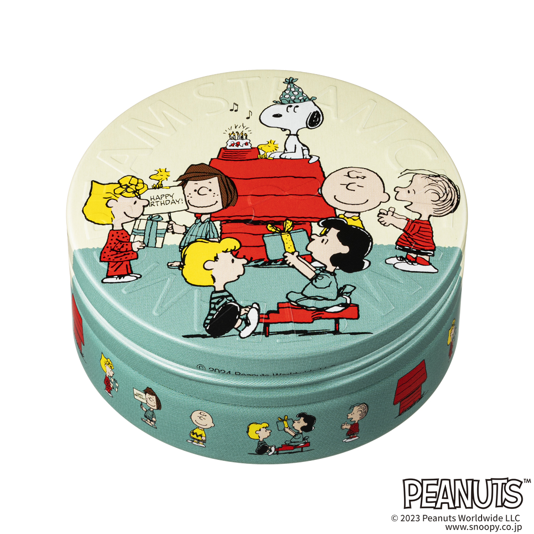 いつも仲良しピーナッツの仲間たちが、そろってスヌーピーのお誕生日をお祝いするようなデザイン! 気の合う仲間が集まると、いつだってその日が特別な日になるね。