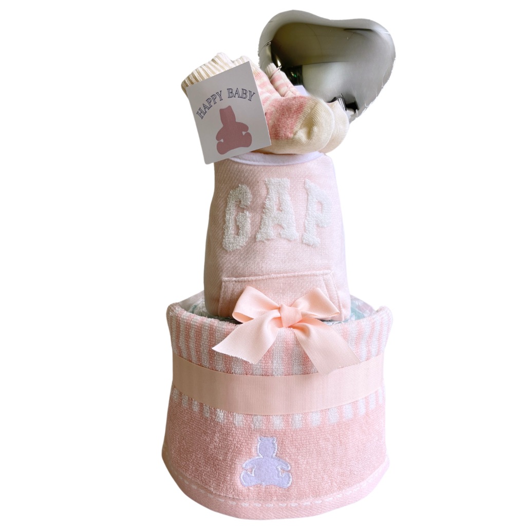 世代を問わず人気のあるGapBabyのアイテムを使用したおむつケーキ。男の子用と女の子用の2種類をご用意しました。