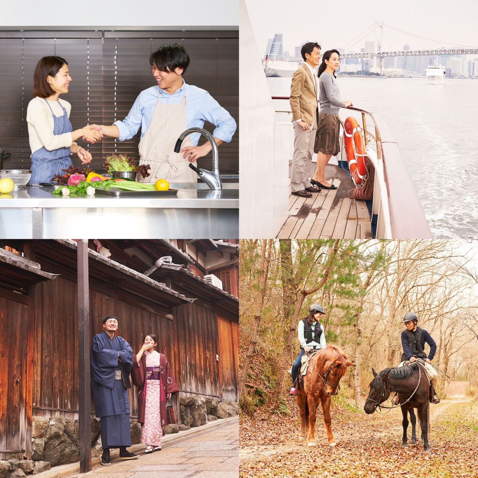 大自然の中で子どもの頃のように楽しめるアクティビティや、お互いの意外な一面が垣間見えるワークショップ、普段は出かけない場所への小旅行や、プライベートな空間でリラックス……。選べるのは、2人の記憶に残る時間です。 本格的なアウトドア体験や食事が充実しています。