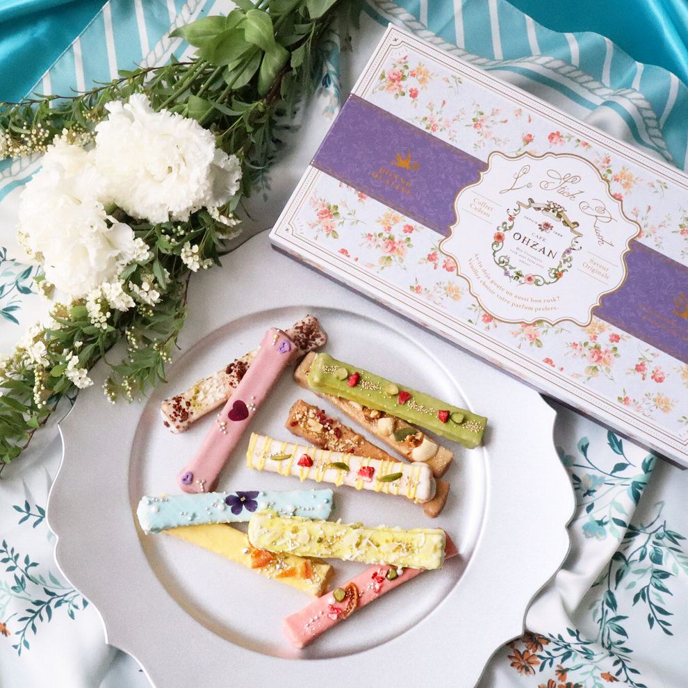 大口注文・法人のお問い合わせはこちら様々な味を楽しめるよう、バリエーション豊かな新作が登場。 箱に並んだスティックラスクは、蓋を開けた瞬間息を呑む美しさ。 食べやすい形状で、差し入れにもおすすめです。