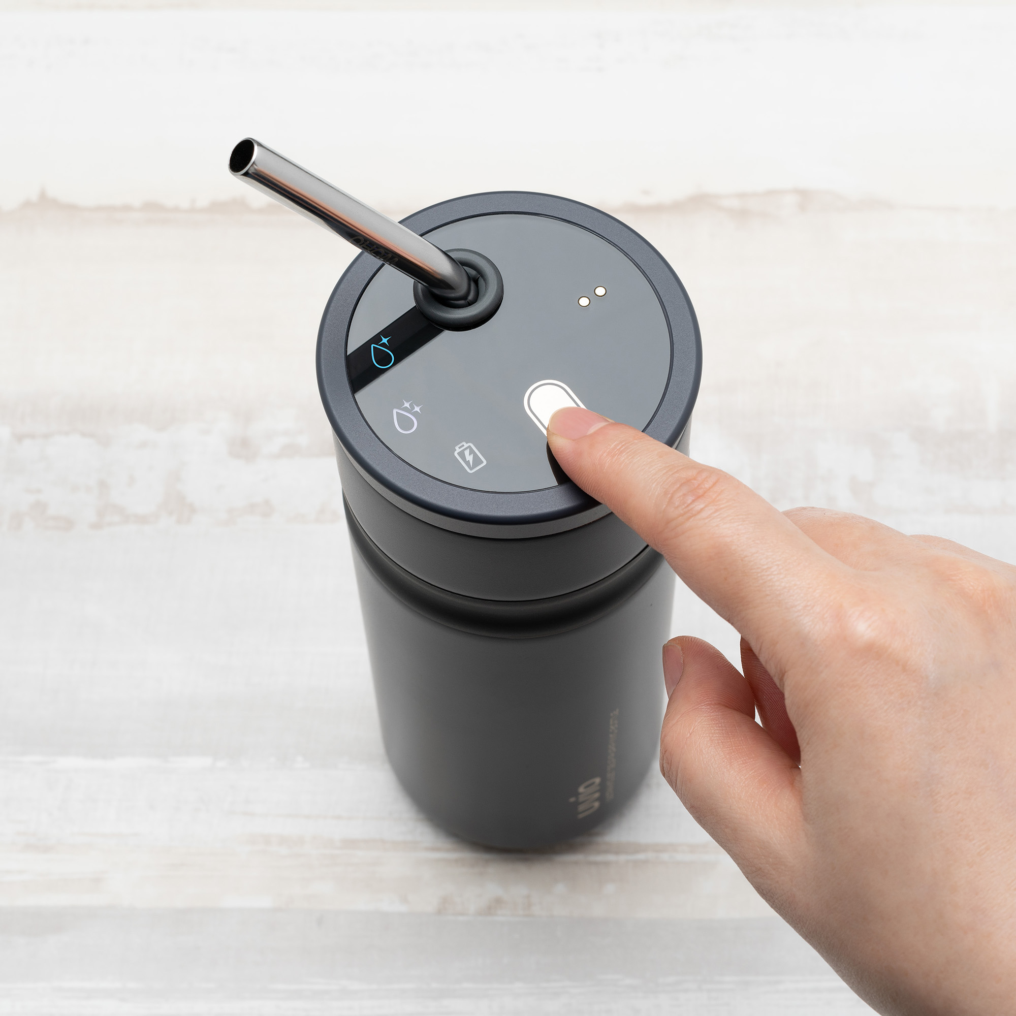 ”いつでもキレイな水が飲める!”ステンレス製のストローがついた、飲料水を99.9%浄水するUV-Cテクノロジーを搭載したウォーターボトルです。自宅で用意した水はもちろん、外出先でも安心して飲料水の補充が行えます。