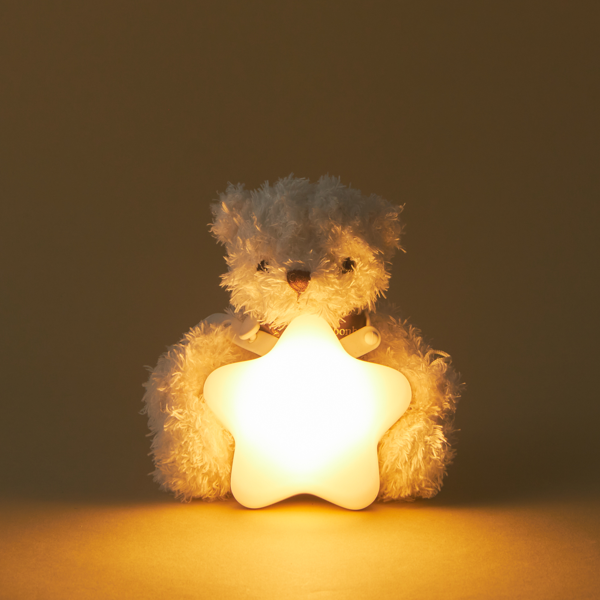 ふわふわの可愛いらしいテディベアとお気に入りのぬいぐるみに取り付けられ、あたたかい光で絵本を照らすことができるえほんライトのセットです。タンプ限定ギフトボックスに入れてお届けします。