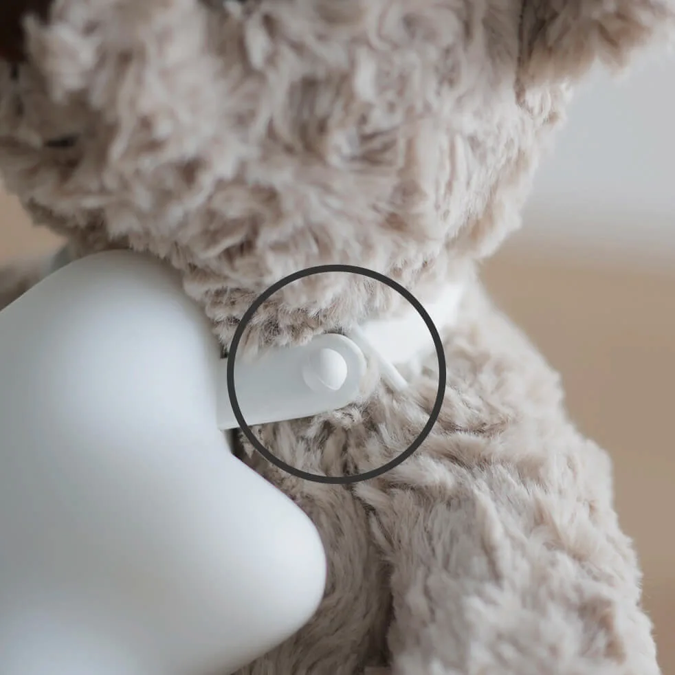 シリコーンカバーで、ぬいぐるみと一緒に眠っても、肌あたりやわらか。 強い力がかかると外れる安全ロック付きで、安心してお使いいただけます。