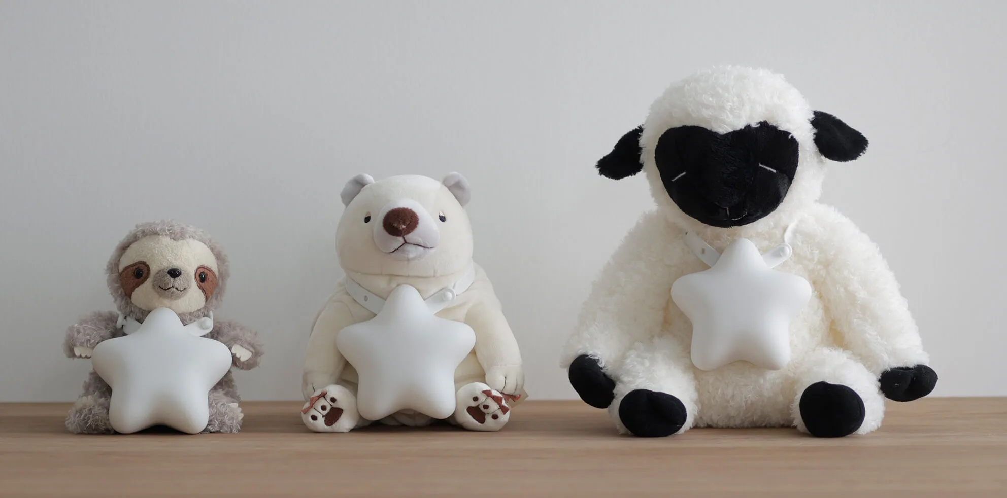 えほんライトはお気に入りのぬいぐるみに取り付けられ、あたたかい光で絵本を照らすことができます。 ※対応ぬいぐるみサイズ 首回り約15~25cm