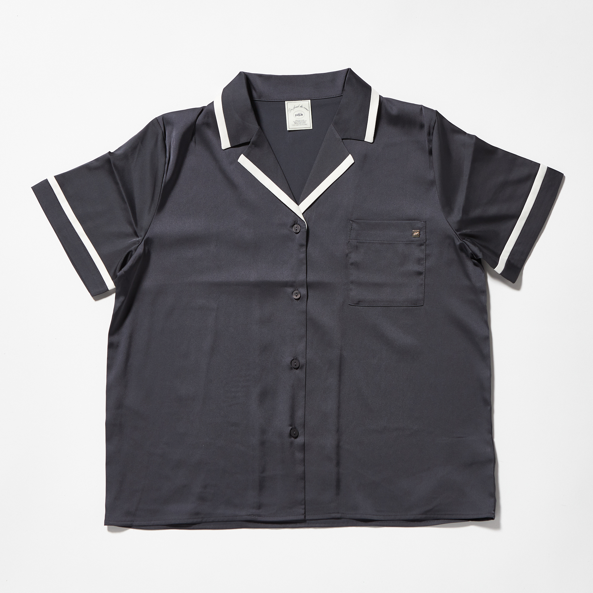 涼しげな開襟シャツは、ワンマイルにも愛用いただけるきちんと感のあるデザイン。襟の後ろにロゴ刺繍が入っているのがポイントです。