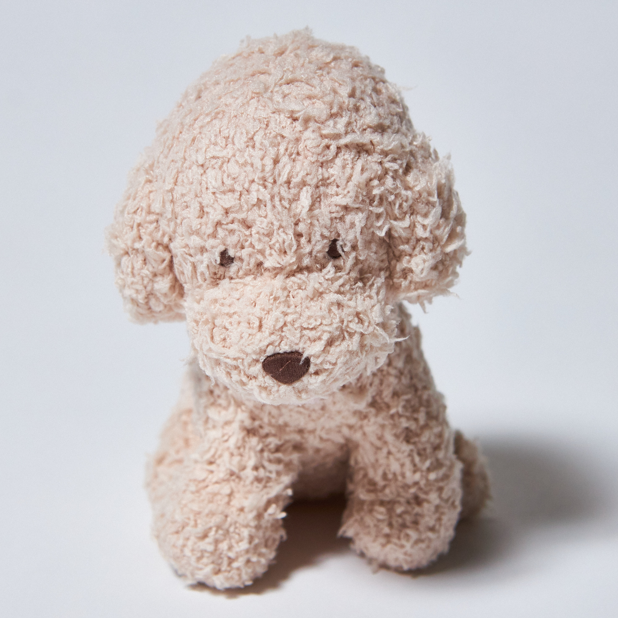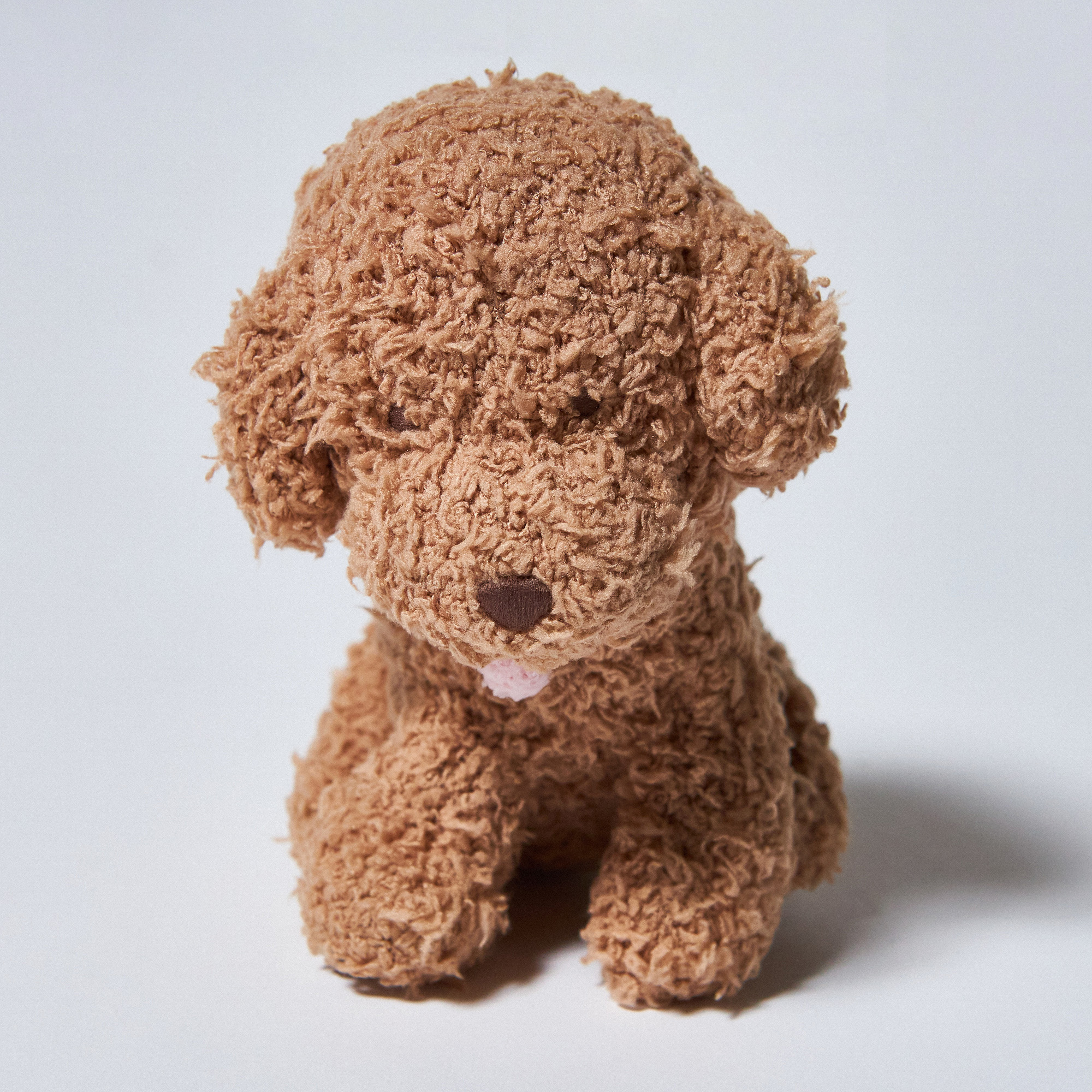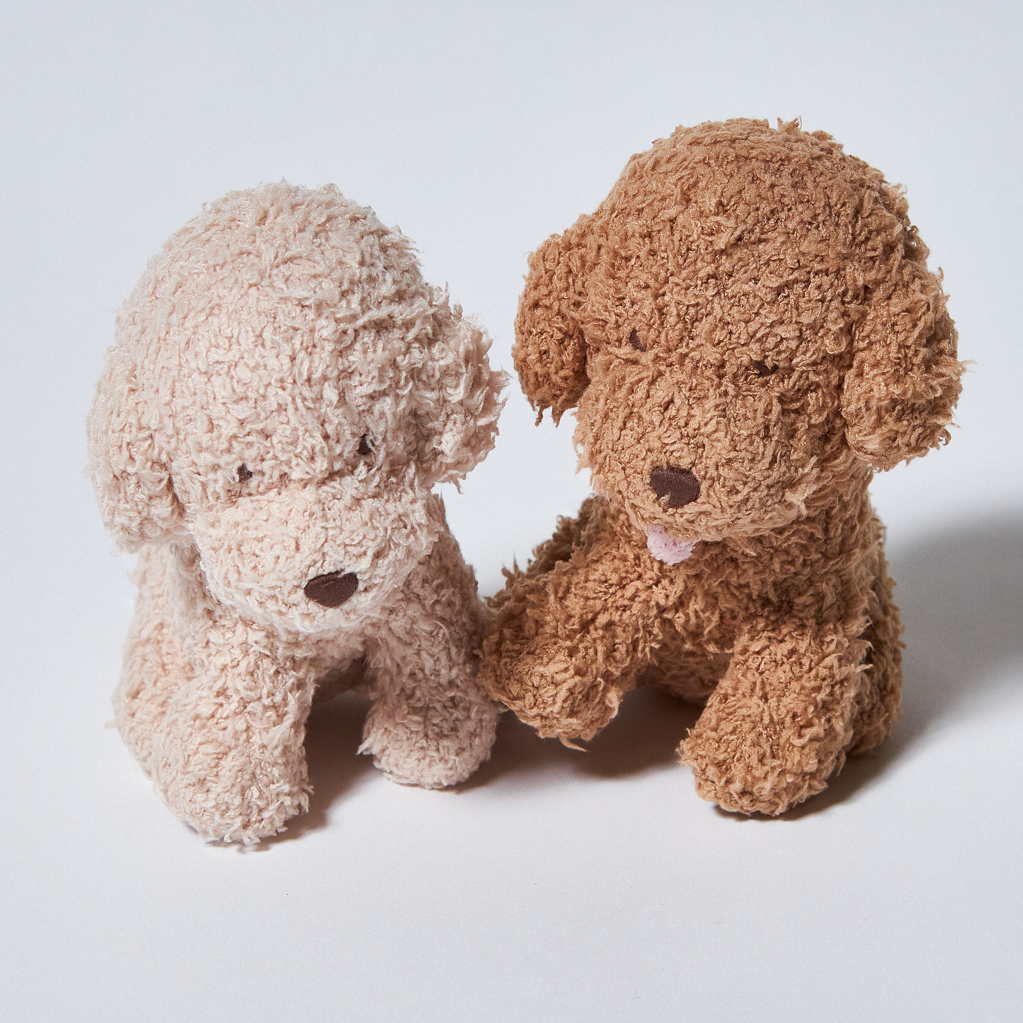 大口注文・法人のお問い合わせはこちら舌をぺろりと出したトイプードルが愛らしい、BABYのための小物シリーズです。 ぬいぐるみとしても楽しめるおすわりポーズのラトルは、振るとやさしく鈴の音がなるオモチャ。足裏には肉球の形の刺繍をあしらった、こだわりのデザインです。 色はベージュとブラウンの2色展開。