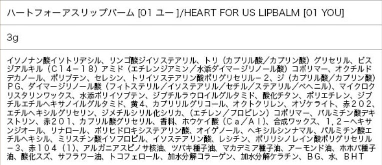 大口注文・法人のお問い合わせはこちら湿度の高い夏から乾燥する冬まで、季節問わず使える、あなた、私、私たちのための心ときめくリップバームです。 コラーゲン、ケラチン、ナチュラルオイルコンプレックスが含まれ、べたつかずつっぱらない、しっとりと健康な唇ケア。どんなリップ製品と一緒に演出しても、より輝くレイアード効果!保湿と水分供給で、唇にうるおいを与えます。