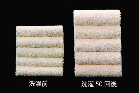 無撚糸タオルの4倍、毛羽落ちが少ないため、赤ちゃんに使用しても安心です。 また、新品よりお洗濯した後のほうがふわふわに! これも、独自の撚糸技術のおかげです。
