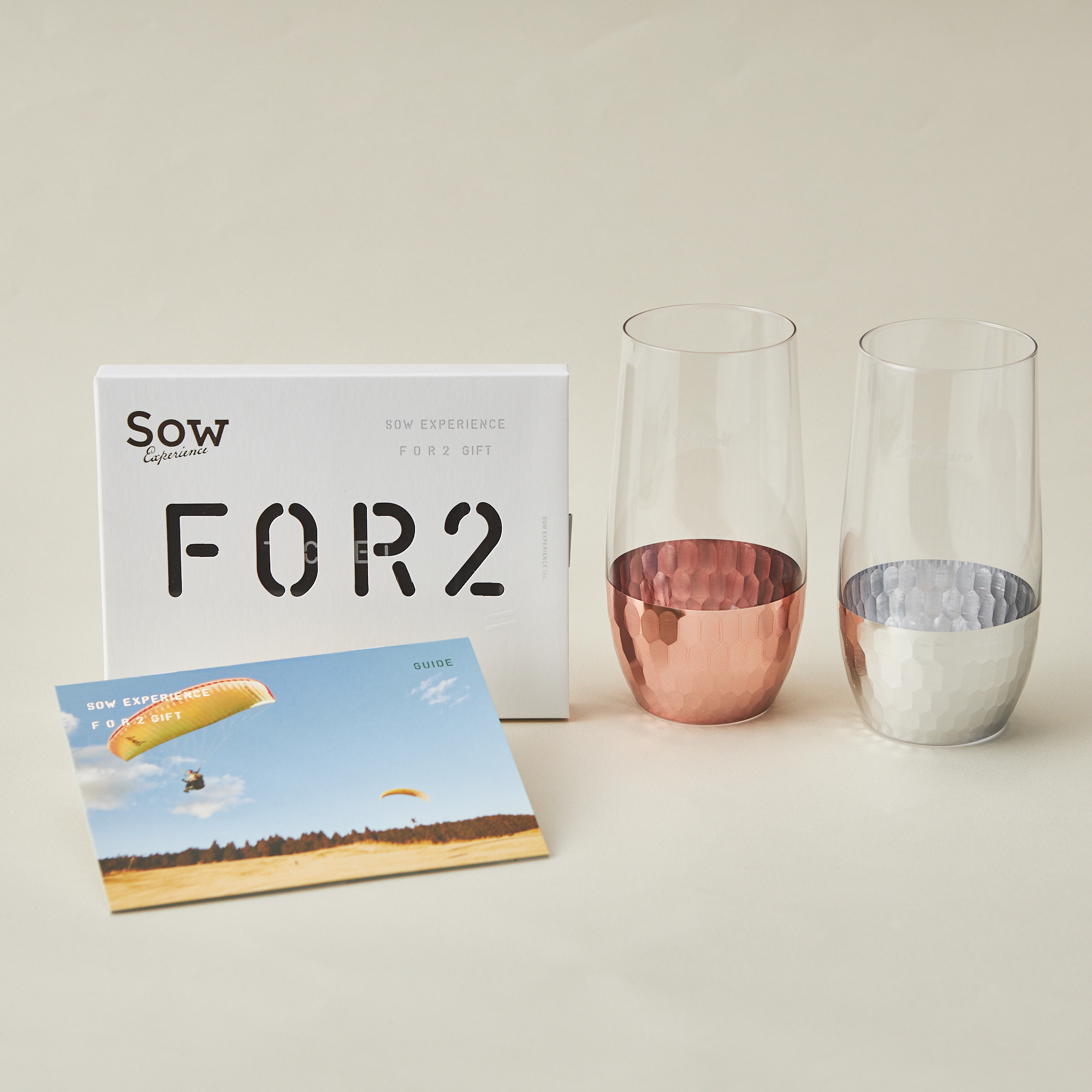 フランス語で煌めきを意味するbrillant(ブリアン)のペアタンブラーと様々なジャンルの体験が選べるギフトカタログ、FOR2ギフトをお届け。ガラスタンブラーは有料オプションで名入れが可能で、結婚祝いなどペアグッズの贈り物におすすめです。