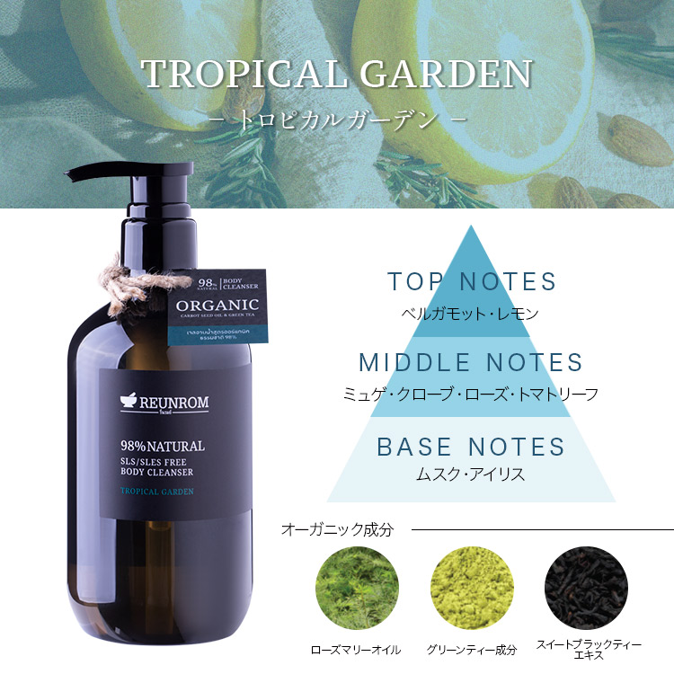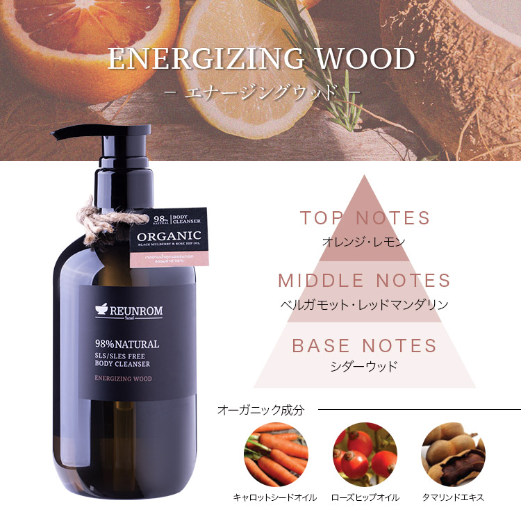 香りは「ナチュラル ボディローション」と同じ、エナージングウッド・アロマティックミント・トロピカルガーデンの3つからお選びいただけます。さらに、香りは香水のように3段階で変化し、ホームケアの時間がより楽しくなるようなフレグランスを採用しました。厳選されたタイのハーブを使用した、上質なアロマの香りに包まれながら、心満たされるバスタイムをお過ごしください。