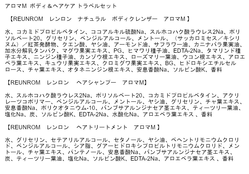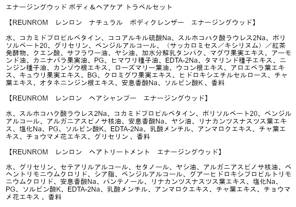 | 内容量/内容物 | ・ナチュラル ボディクレンザー 100ml ・ヘアシャンプー 100ml ・ヘアトリートメント 100ml |
