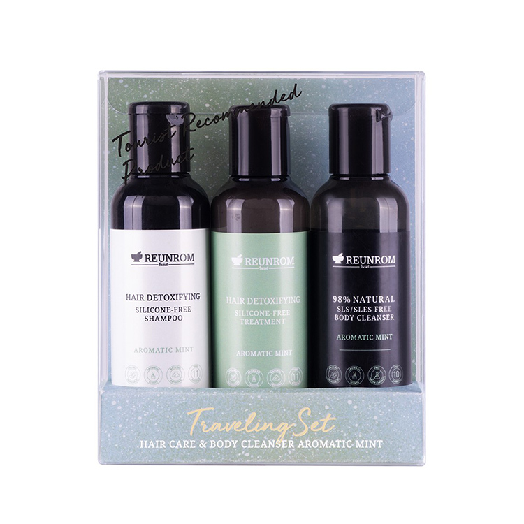 大口注文・法人のお問い合わせはこちらタイに古くから伝わり、家庭薬としても親しまれている地産のハーブを主要成分に用いた ヴィーガン処方のライフスタイル&スパブランド「REUNROM(レンロン)」。 人気のシャンプー・トリートメント・ボディクレンザーを試せる、持ち運びに便利なトラベルセットが日本上陸。天然成分98%シリコンフリーのオーガニックシャンプー&トリートメントと、肌をやさしく洗い上げるボディクレンザー(ボディソープ)のミニサイズ3種が入ったお得なセットになっています。