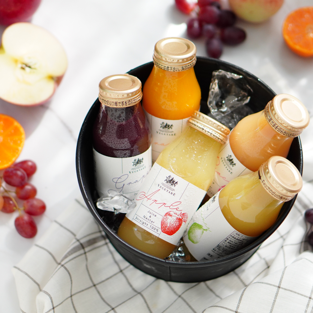 完熟した果実を収穫し、旨味がギュッとつまった「VEGETARE(ベジターレ)」厳選の果実のみを絞った国産果実100%ジュース&ネクター5本セットです。砂糖、水、香料、保存料不使用で丸絞りの果実のおいしさをダイレクトにお届けします。小瓶タイプの飲みきりサイズなので、いつでもフレッシュな味わいがお愉しみいただけます。
