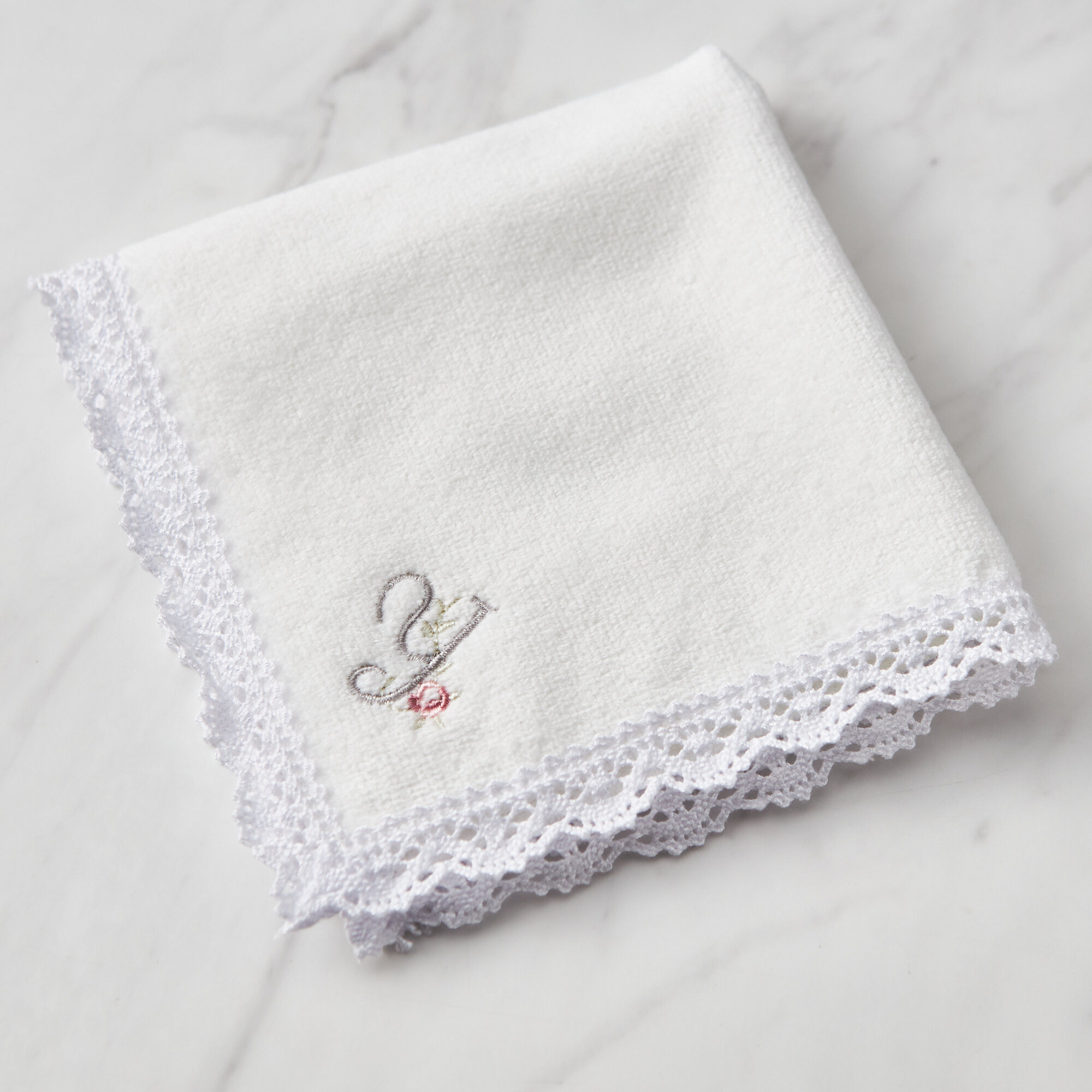 イニシャル入りのタオルハンカチです。相手の名前を思い浮かべながら選べる一枚に、ありがとうの気持ちを添えてお贈りいただけます。イニシャル入りでシンプルな一枚なので、幅広い世代の方へお贈りいただけます。
