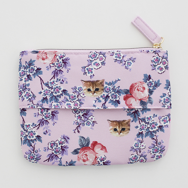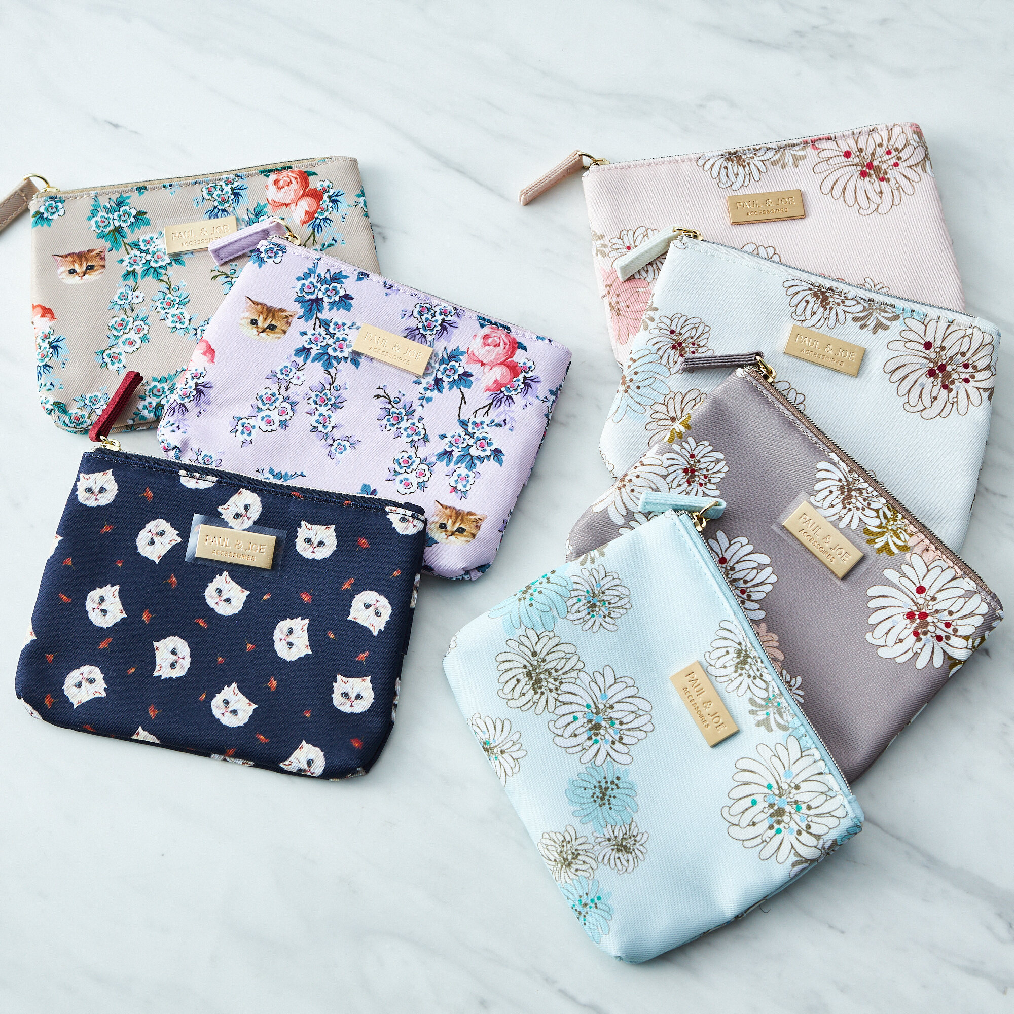 PAUL & JOE ACCESSOIRSの定番柄、花柄のクリザンテーム・猫のジプシーとヌネットを纏ったティッシュポーチ。スリムで持ち運びやすく、ギフトにも最適。