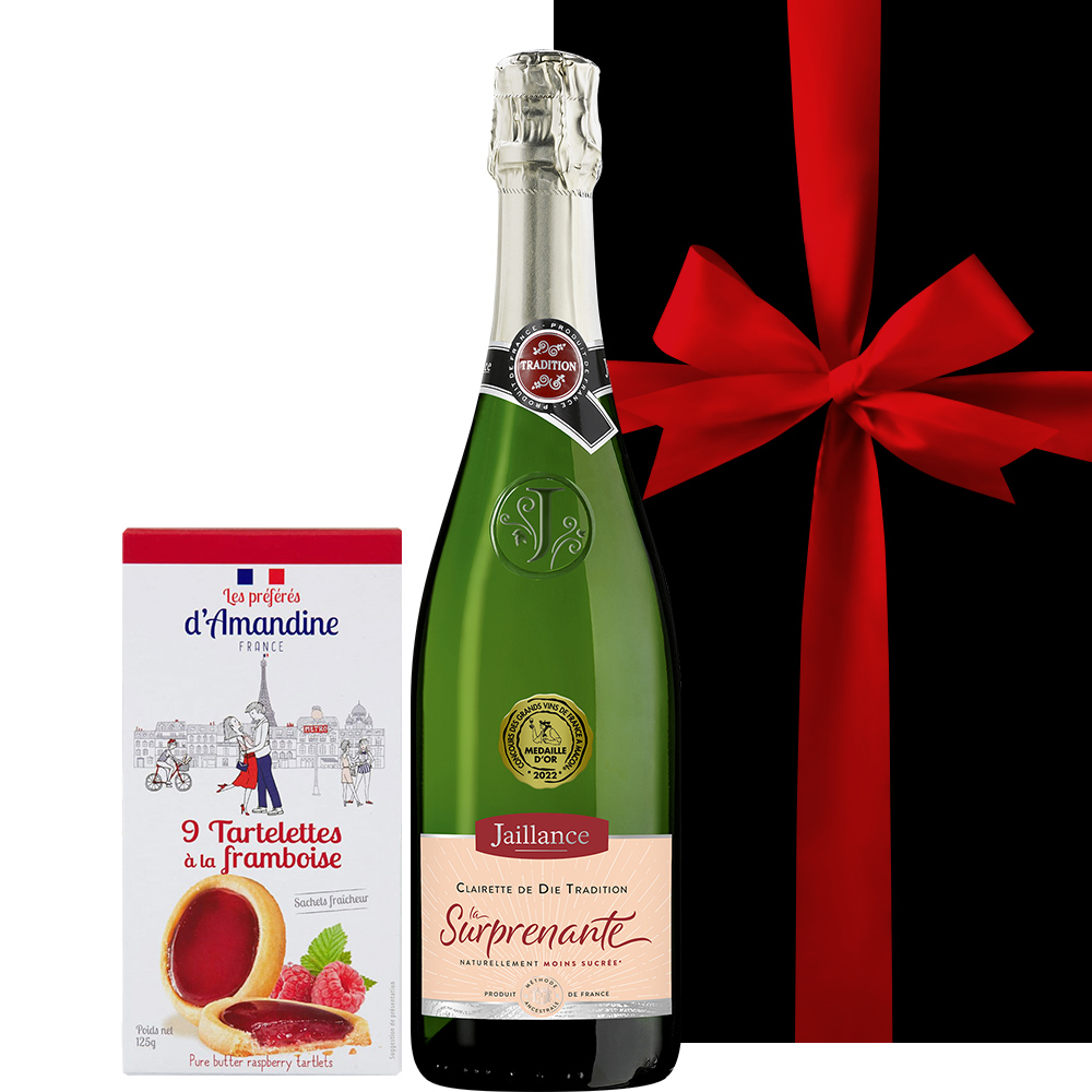 大口注文・法人のお問い合わせはこちら南フランスの伝統製法で造られた、ほんのり甘口のスパークリングワインとフランス産のかわいらしいラズベリークッキーのセット。 甘いものがお好きな方へのプレゼントにぴったりです。