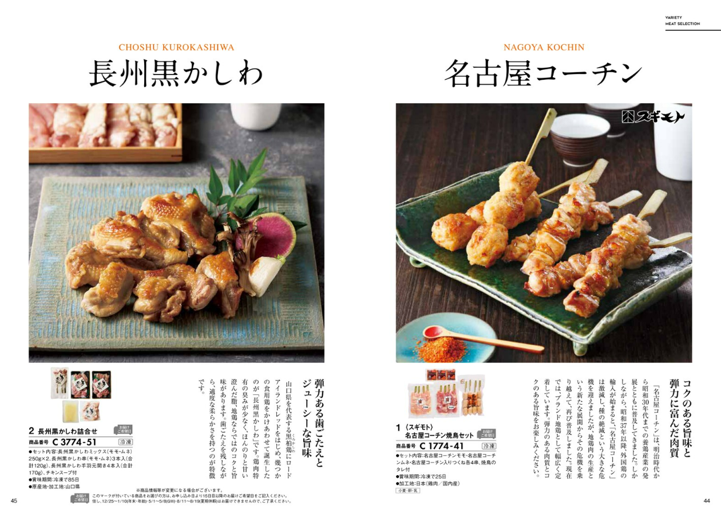 銘柄豚や地鶏、羊肉まで、数多くの商品を掲載。その他にも、ハンバーグやハムなど、手軽に楽しめる商品もお選びいただけます。 ※コースによって掲載がない商品もございます。予めご了承ください。