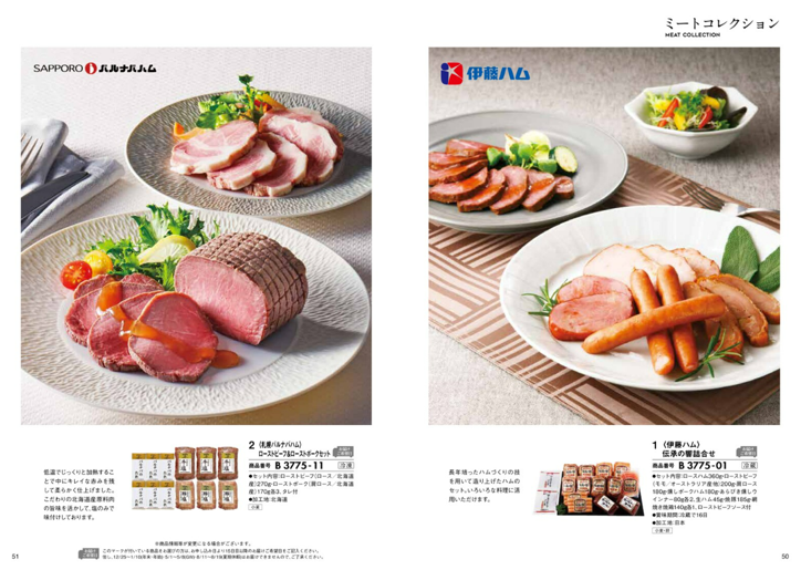 大口注文・法人のお問い合わせはこちらプレミアムな和牛や話題のお肉が勢揃い。 吟味した、選りすぐりの一品をお選びいただけるカタログギフトです。 商品点数:約75点 ページ数:66ページ