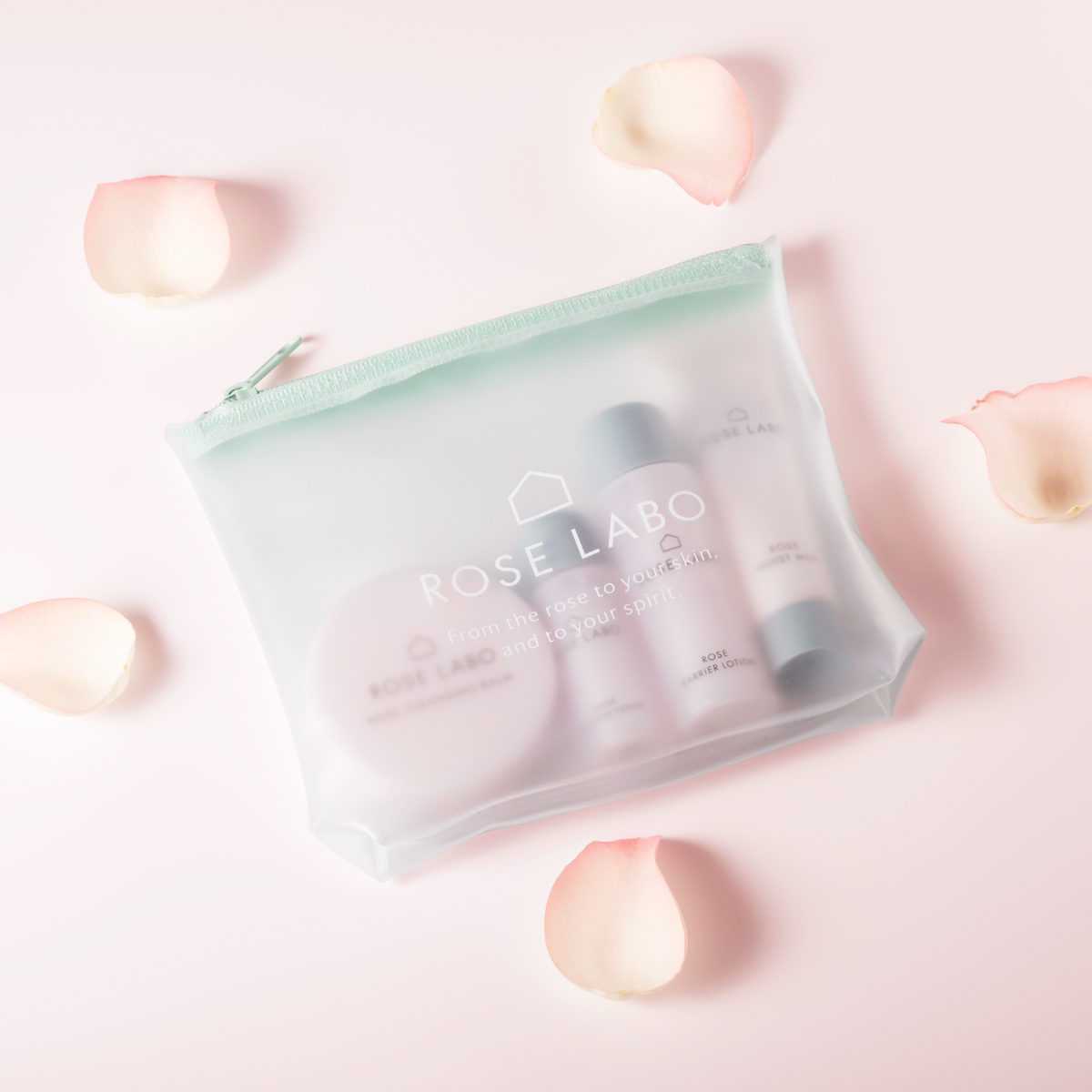 大口注文・法人のお問い合わせはこちらROSE LABOが埼玉県深谷市で農薬を使わずに栽培した「食べられるバラ」から抽出したローズウォーター・エキスを贅沢に使用したスキンケア。 洗顔・メイク落とし・美容液・化粧水・乳液のミニサイズがセットになっており、旅先でも手軽にバラの恵みをお肌にチャージ。 摘みたてのフレッシュなバラの香りが心地よく、心までリフレッシュ。『食べられるバラ』の恵みを詰め込んだスキンケアで、旅先でも肌に輝きを。