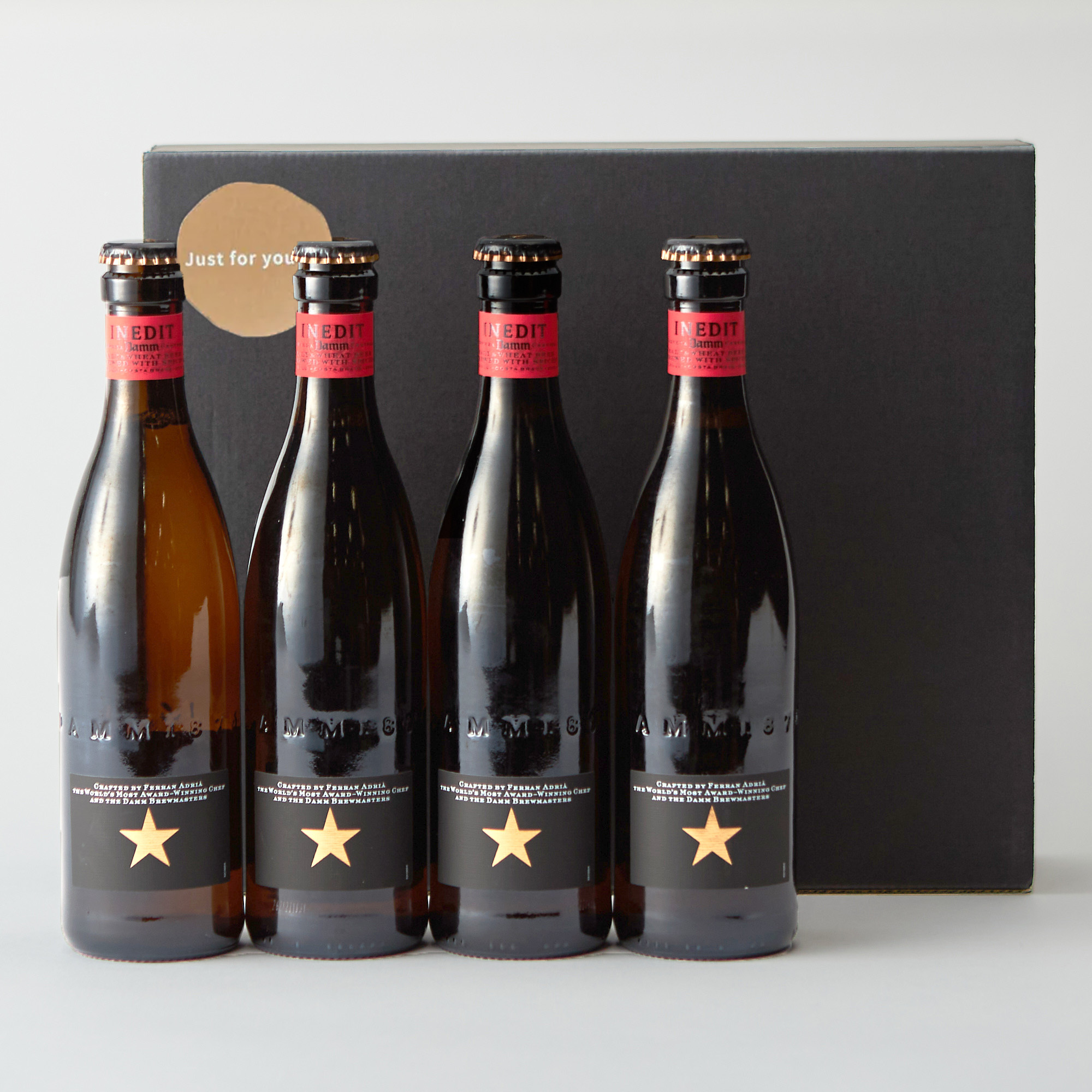 世界一予約のとれないといわれるスペインの超高級3つ星レストラン 「エルブジ」!!その料理長フェラン・アドリアとソムリエチームが、「セレブを迎えるワインはあるが、ビールがない」をコンセプトにして、バルセロナNo.1のビールメーカー「ダム社」と共同開発して生まれた究極のビールです!まるでシャンパンのようにフルーティーで華やかな香りは、ぜひワイングラスでお楽しみ下さい。シェアにも最適な4本セットでご用意しました。