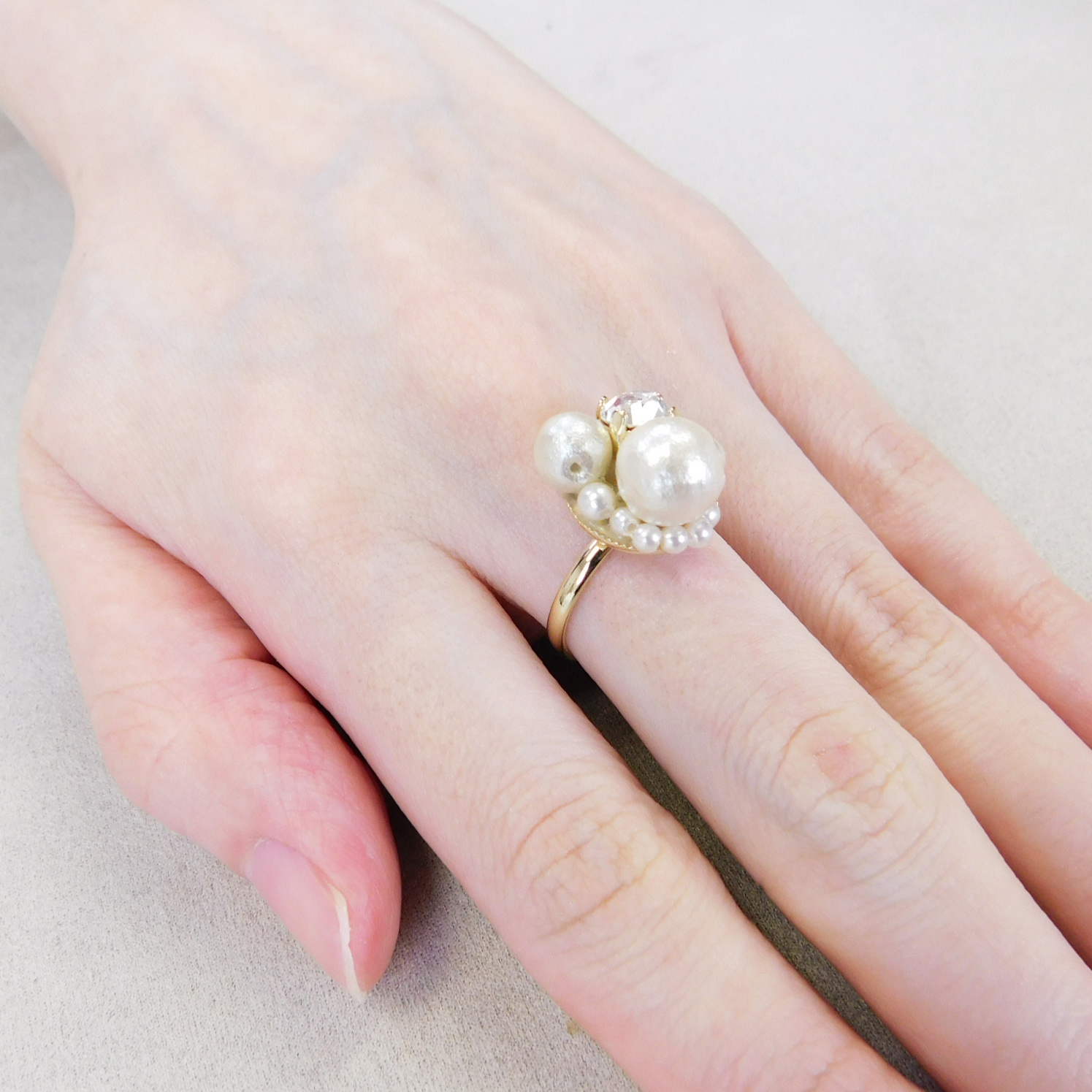 大口注文・法人のお問い合わせはこちらシンプルな一粒のコットンパールプチネックレスと、ゴージャスなコットンパール使いのデザインリングを合わせてお届けします。ギャップを楽しめる嬉しいセットです。 普段使いはもちろん、パーティーなど華やかな場所にもおすすめ。合わせる服装によって表情を変えてくれるデザインです。