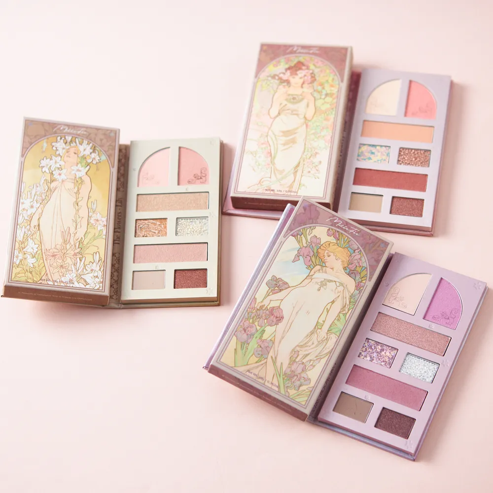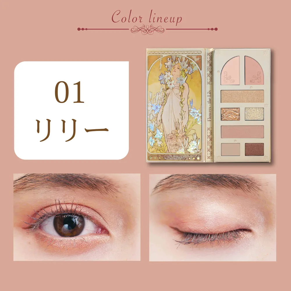 絵画からインスピレーションを得たアイシャドウ・チーク・ハイライトに使える贅沢なマルチユーズパレットと、イニシャル入りハンカチをセットでお届けします。パレットはアルフォンス・ミュシャの連作『四つの花』から着想を得た美しいデザインでメイクアップ時間も美しく。ハンカチは肌触りがソフトで、お肌にやさしいタオル生地でできています。