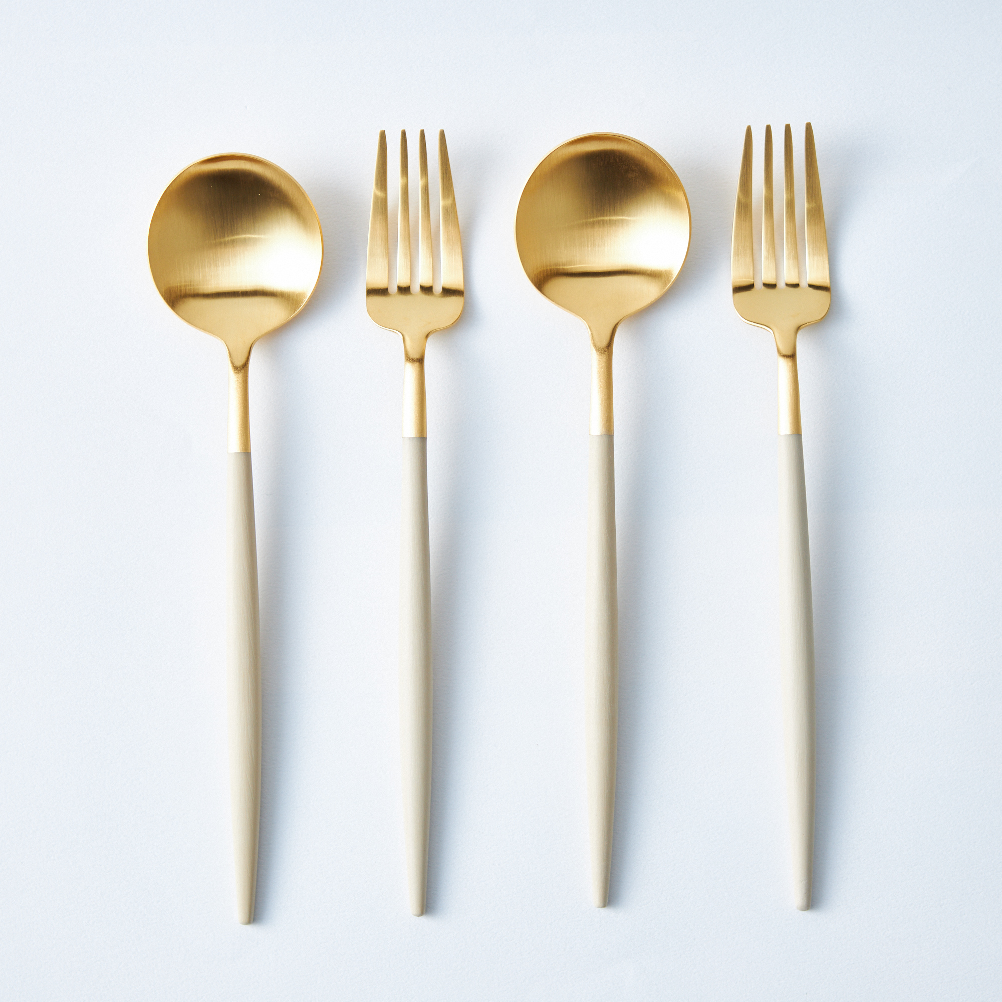ポルトガルのカトラリーメーカー「Cutipol(クチポール)」のゴアアイボリーxゴールド4本セットです。