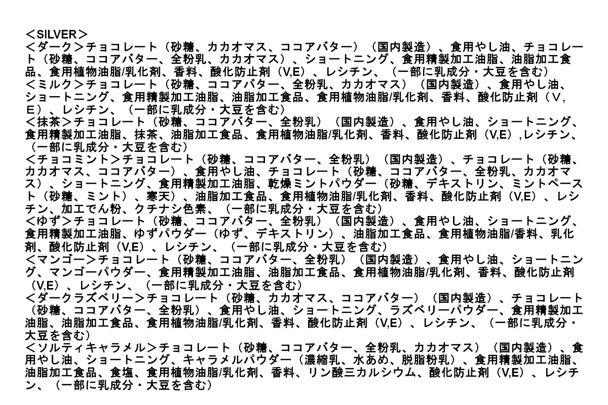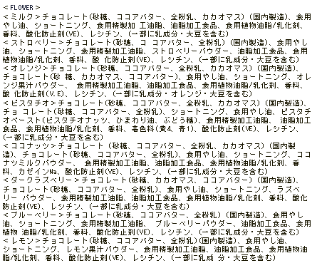 | アレルゲン情報 | <SILVER>乳成分・大豆 <WHITE・FLOWER>乳成分・大豆・バナナ |