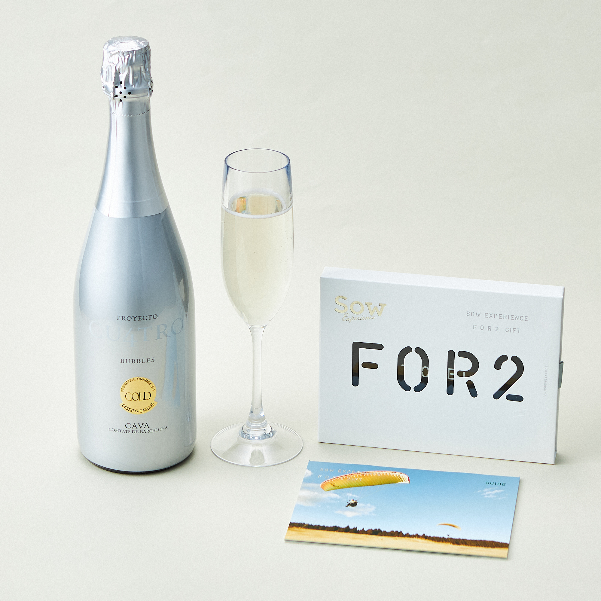 大口注文・法人のお問い合わせはこちら2種類からお選びいただけるスペイン産スパークリングワインと2人で参加できる体験だけを集めた「体験ギフト」がセットになったオリジナルギフトセットです。
