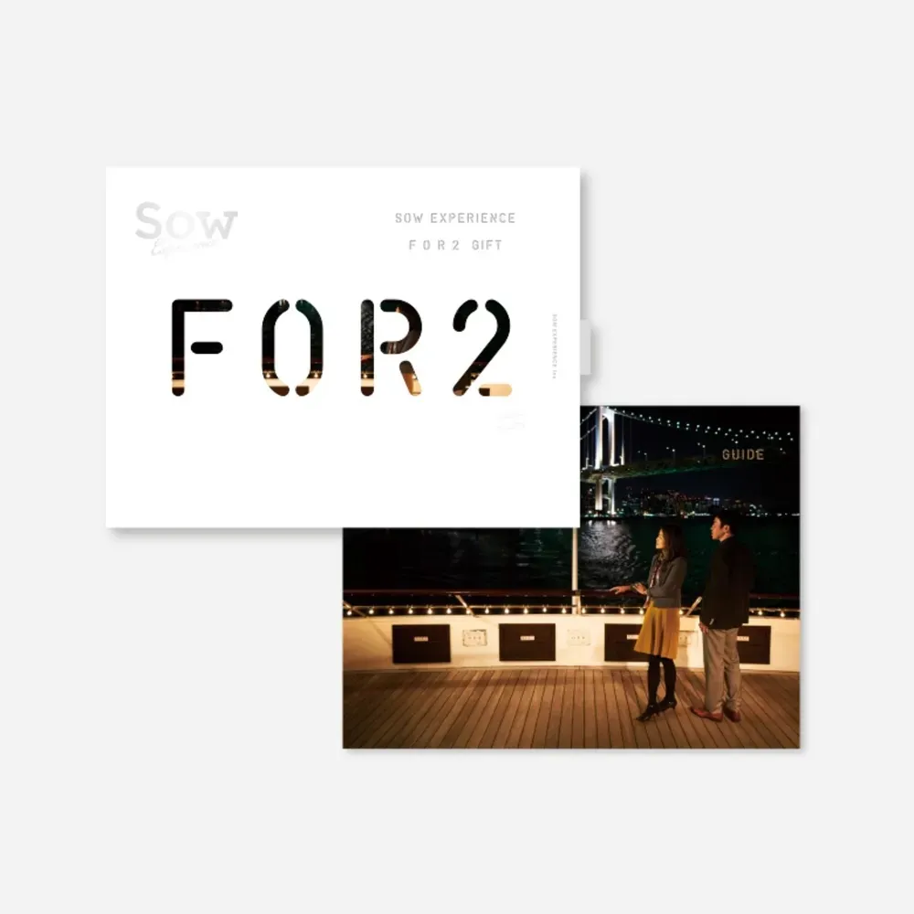2人で参加できる体験だけを集めた「体験ギフト」です。大自然の中で楽しむアクティビティや、ものづくり、クルージングなど…。 47都道府県で利用できるので、日本にお住いのどなたにも贈れます。2人一緒に楽しめる体験がたくさん詰まった素敵なギフト!2人の記憶に残る時間をお届けします。 ※所有時間や開催日時が異なりますので、随時SOWホームページを確認してください。
