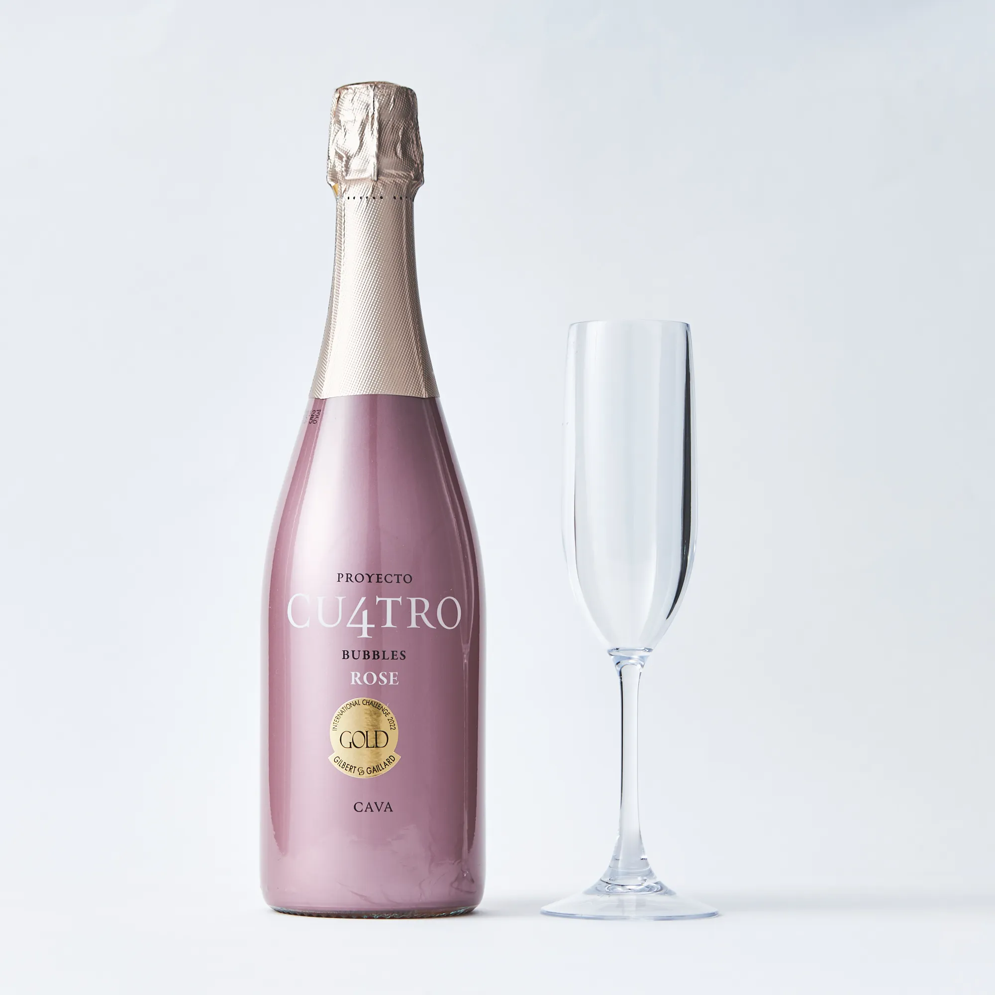 クワトロとは数字の4の意味。4種類のブドウ品種を使って造られることから、この名前がついています。ブドウは全て手摘みされ、香りをより引き出すために低温で非常にゆっくりと発酵が行われます。 濃いピンクの深く美しい色調。グラスに注ぐと、キメの細かい泡が穏やかに立ち上ります。繊細でフレッシュな香りの中にも少しドライフルーツのニュアンスのあるストロベリーなどの赤系果実のアロマが感じられます。いきいきとした酸味が心地よく、バランスの良い味わいが口中に優しく広がっていきます。